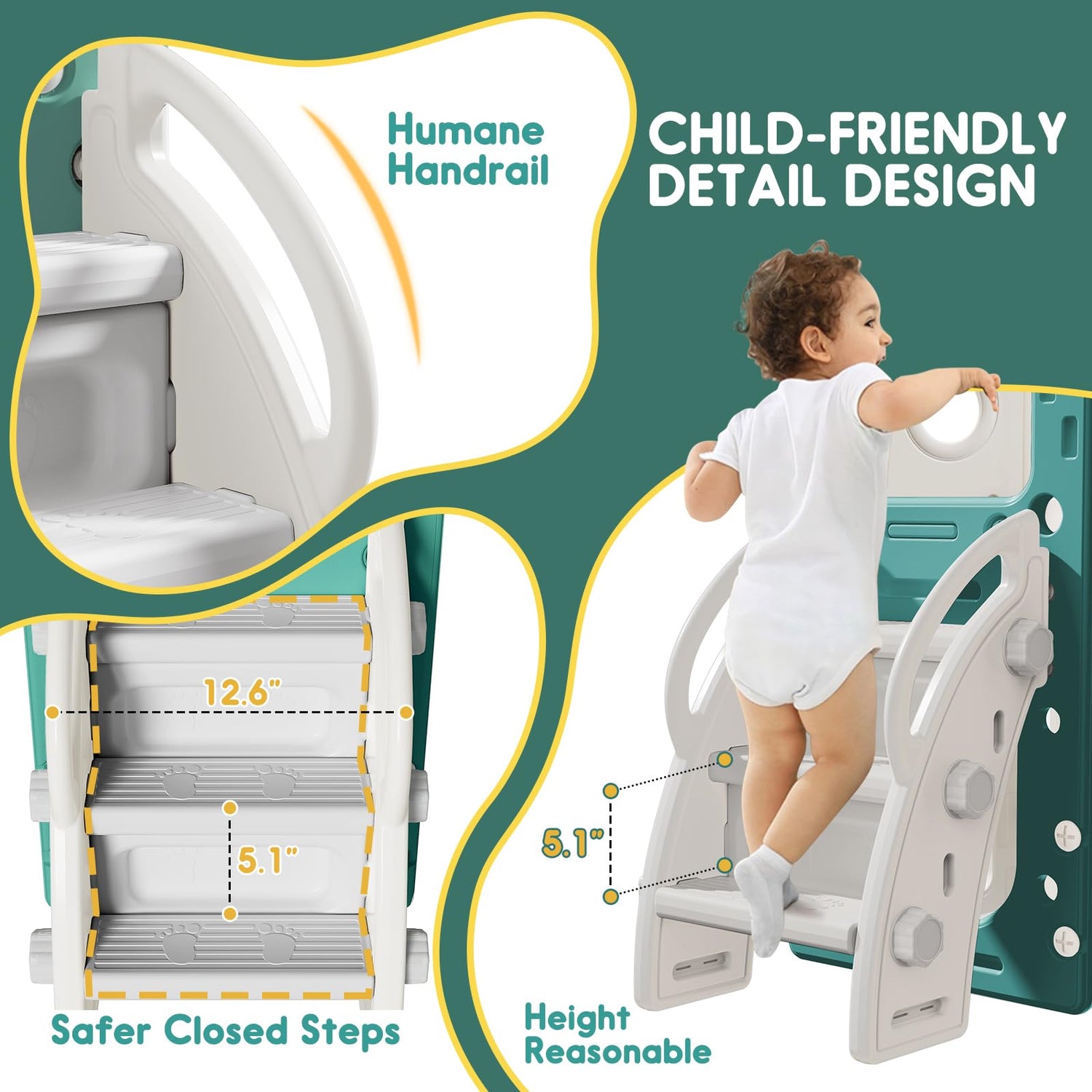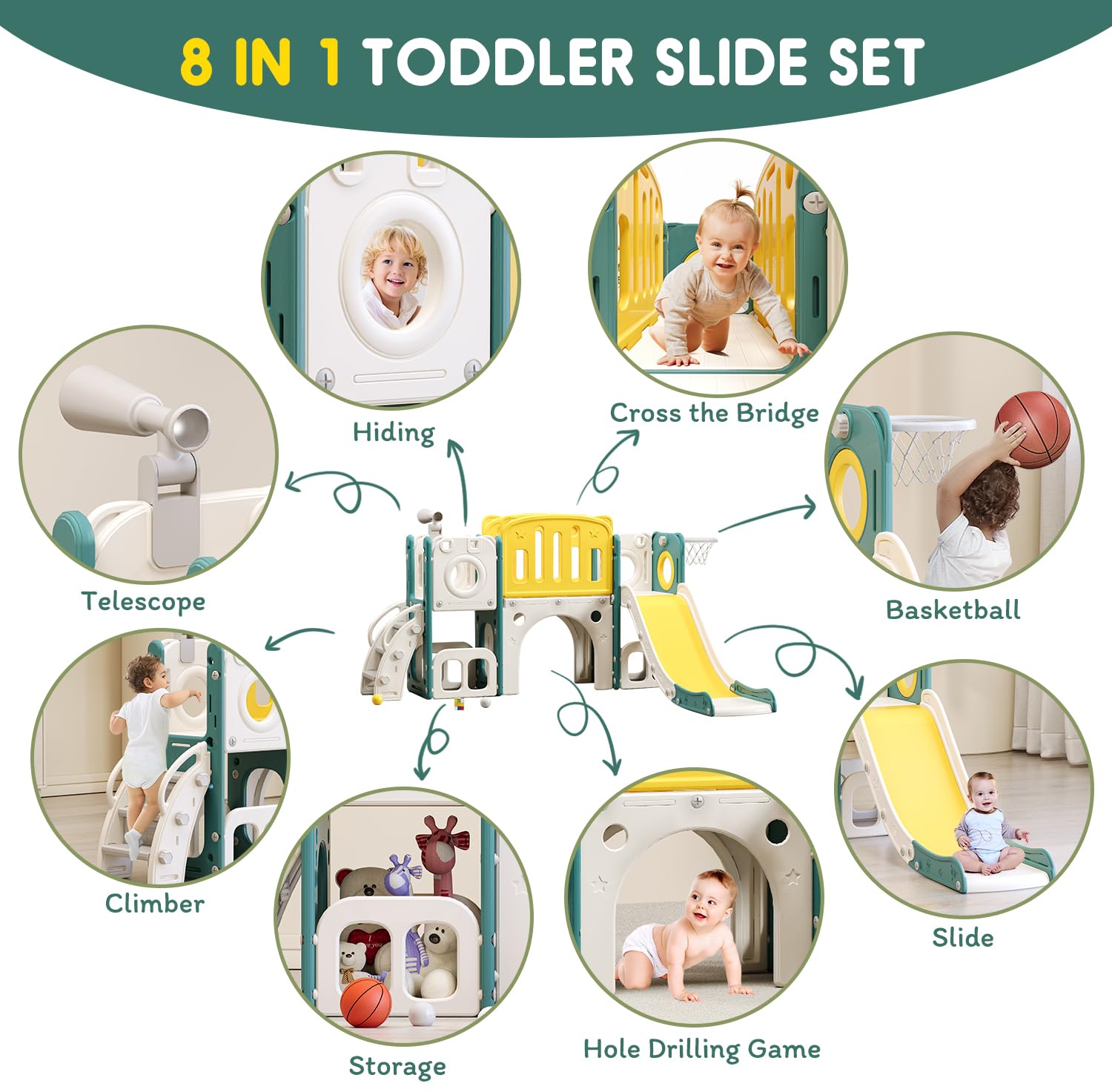 8 in 1 Toddler Slide Set, Kids Slide for Toddlers, Toddler Climber Slide PlaySet with Basketball Hoop,Outdoor Indoor Playground for Toddlers Upgraded