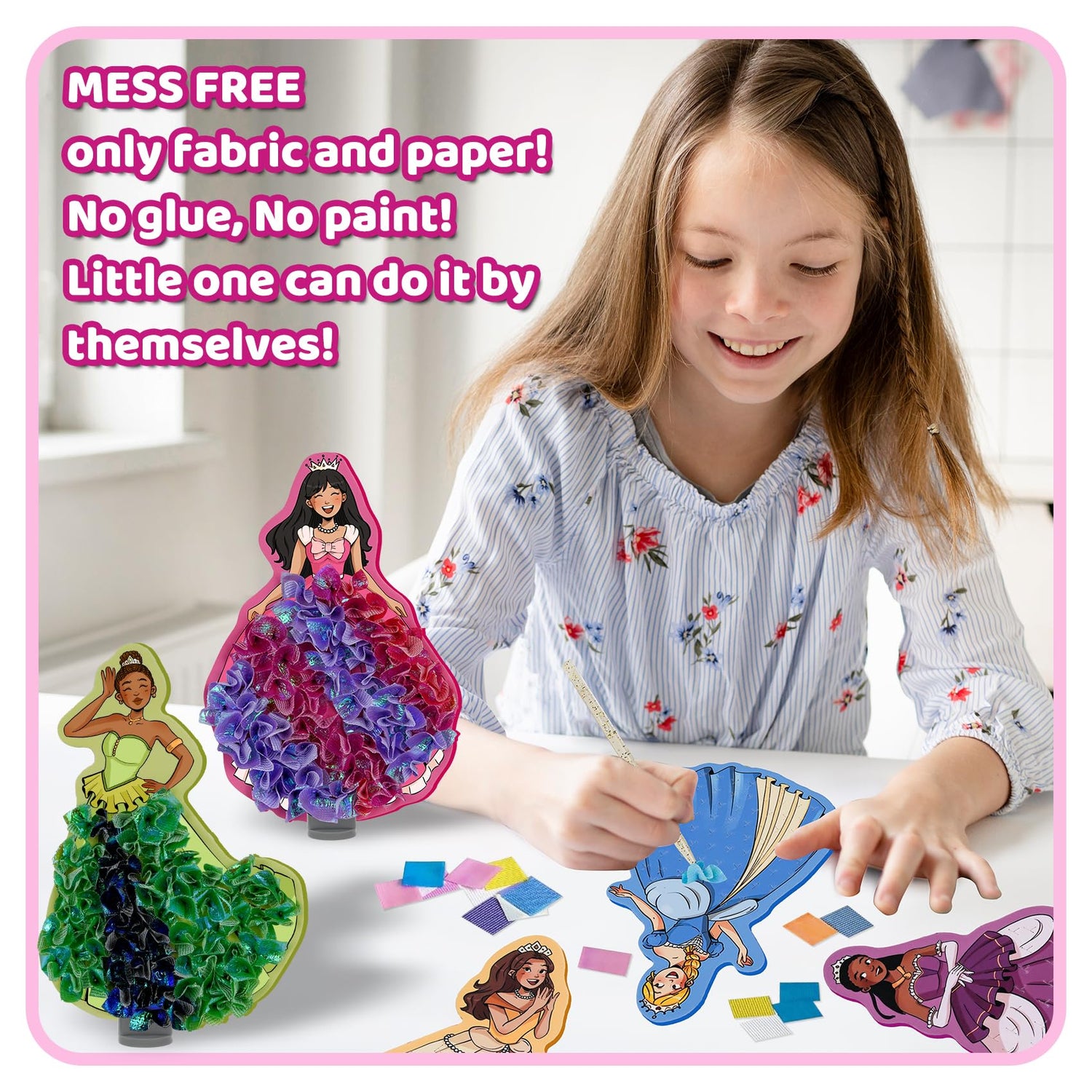 - Mess-Free Creative Art & Craft Fun Kids' Paper Craft Kits: No glue, no scissors, no paint - just pure creative magic! Our innovative poke in kits system lets kids decorate princess gowns with colorful fabric squares completely mess-free.