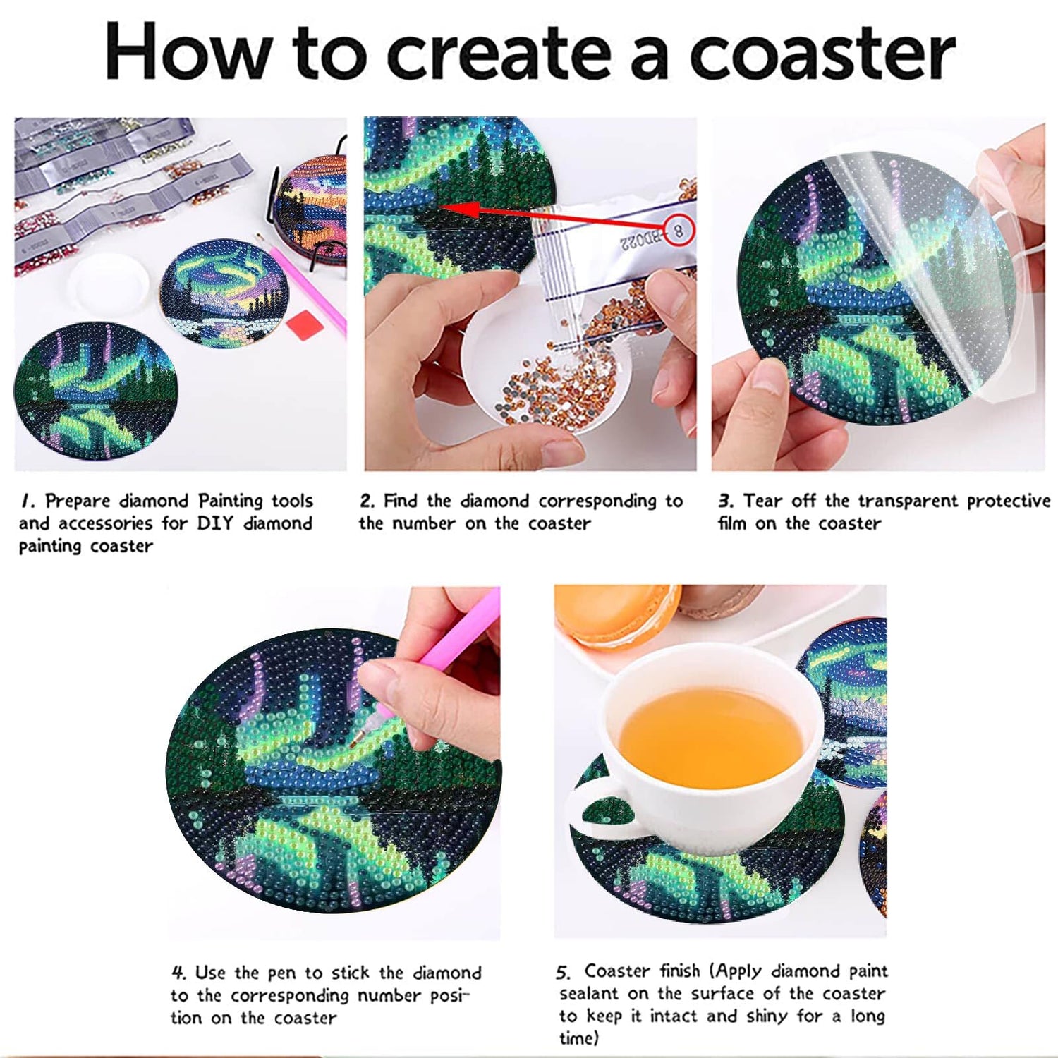 - Diamond Art Kits Coasters for Adults - This aurora landscape designed diamond art coasters kits is suitable for any teenager and adult. You can fill in the corresponding diamond according to the numbers on the canvas to create very beautiful and artistic gem painting, the adult diamond painting kits are simple to operate and easy to use. Just enjoy creating a stunning work of art, everyone could be a good artist