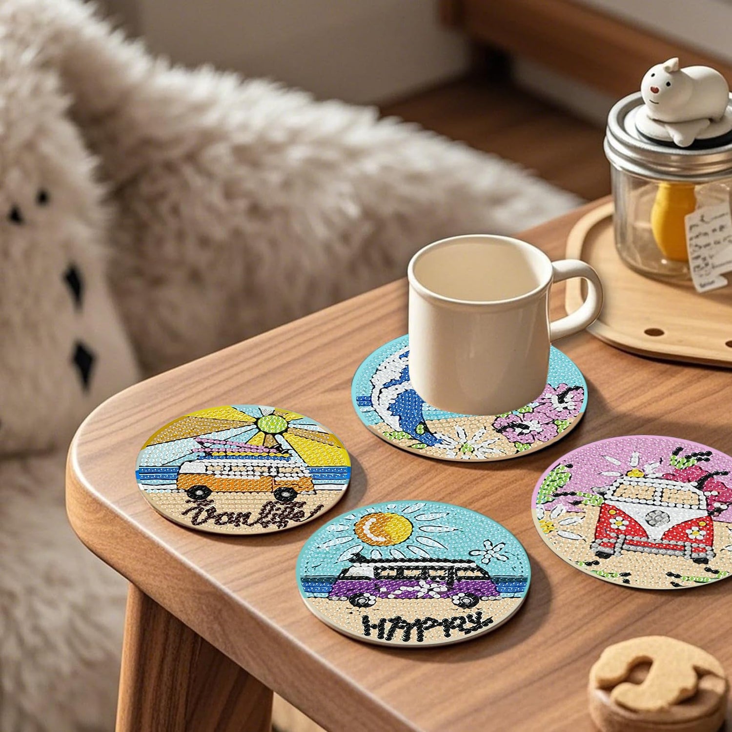 - 【Non-Slip Bottom】Each diamond painting coaster have a natural lie pad to protect your furniture or tabletop from scratches and keep the coaster in place, safeguarding your surfaces from heat and preventing them from sticking to your glassware.