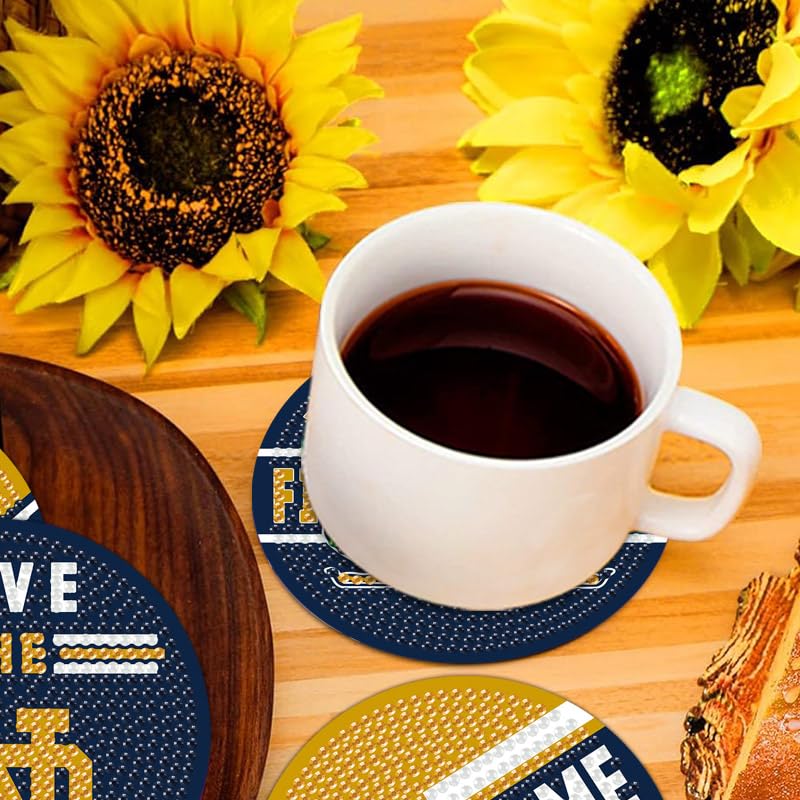 8 Pcs Diamond Painting Coasters, DIY Football Diamond Art Coasters Diamond Painting Kits for Beginners, Diamond Art Gift Craft Supplies Notre Dame Blue