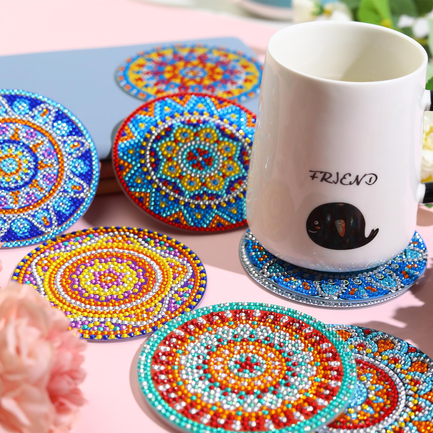 - Non-Slip Bottom: Each diamond painting coaster is equipped with a cork back pad, can not only prevent table from worn and scratched, but also make the coaster firmly attached to the desk