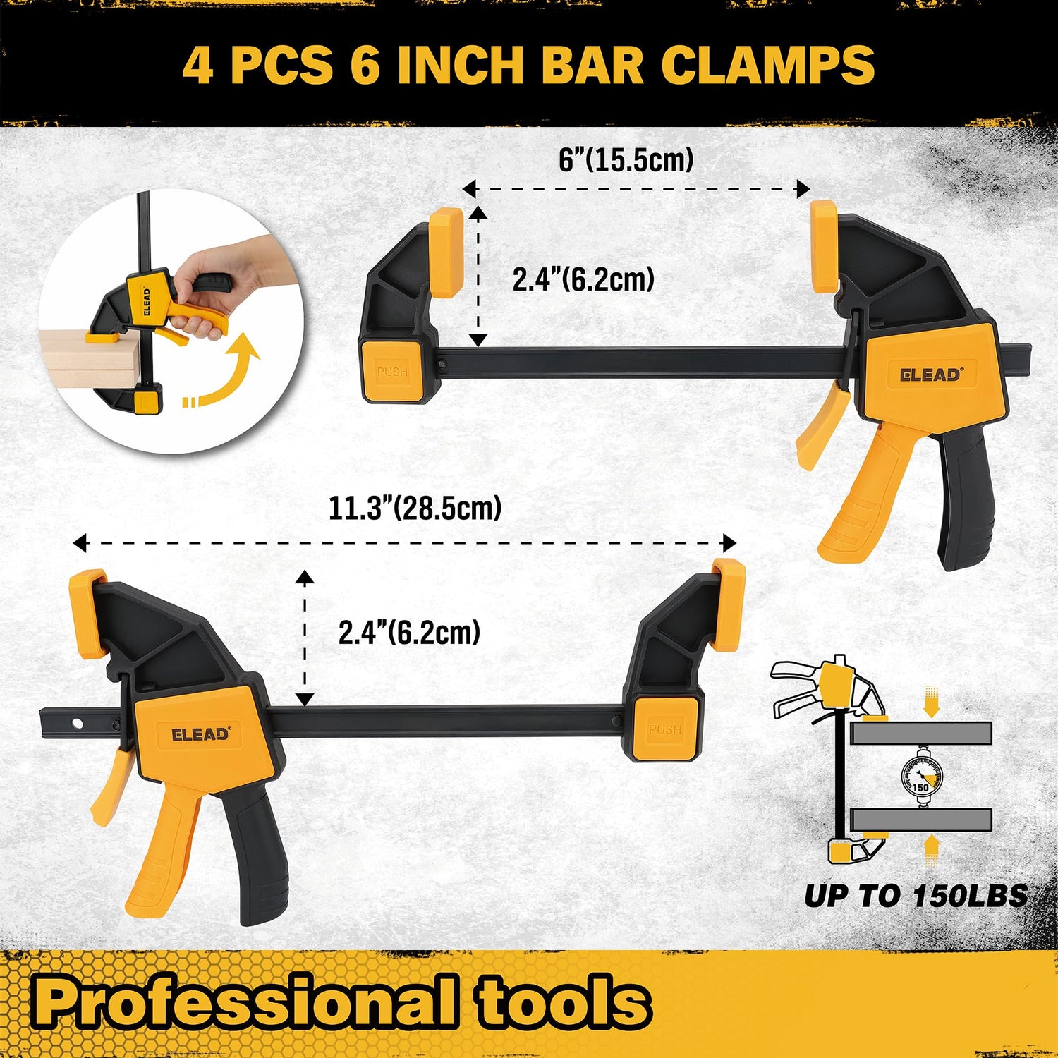 - HIGH CLAMPING FORCE - With a clamping force of up to 150 lbs, these clamps securely grip small and large wooden pieces, ensuring stability and preventing slippage during your projects.