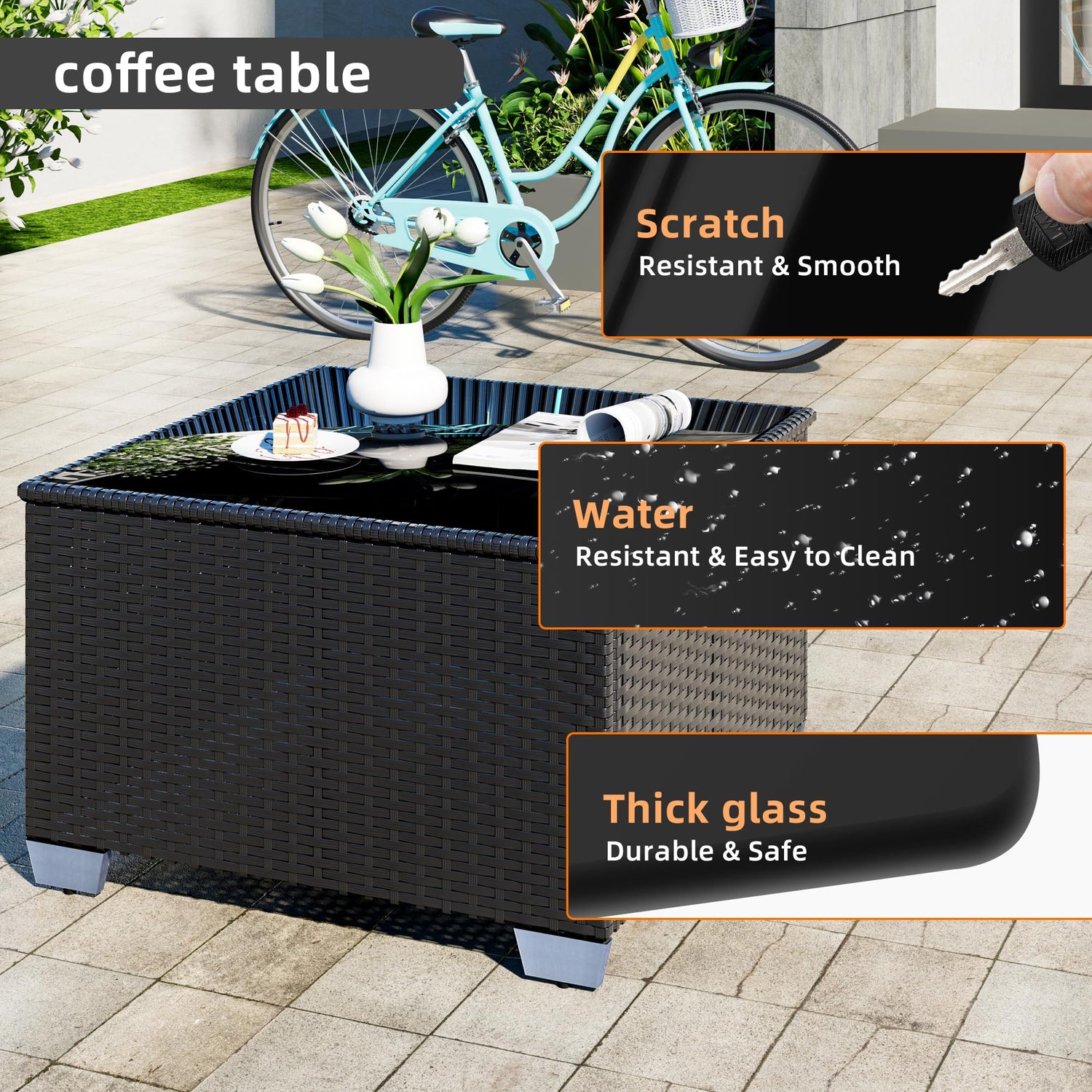 - Durable PE Wicker & Rust-Resistant Steel Frame – Handwoven rattan over a sturdy steel frame ensures long-lasting durability. Splash-proof cushions with thick foam provide comfort, and the fire pit table is designed for safety and style.