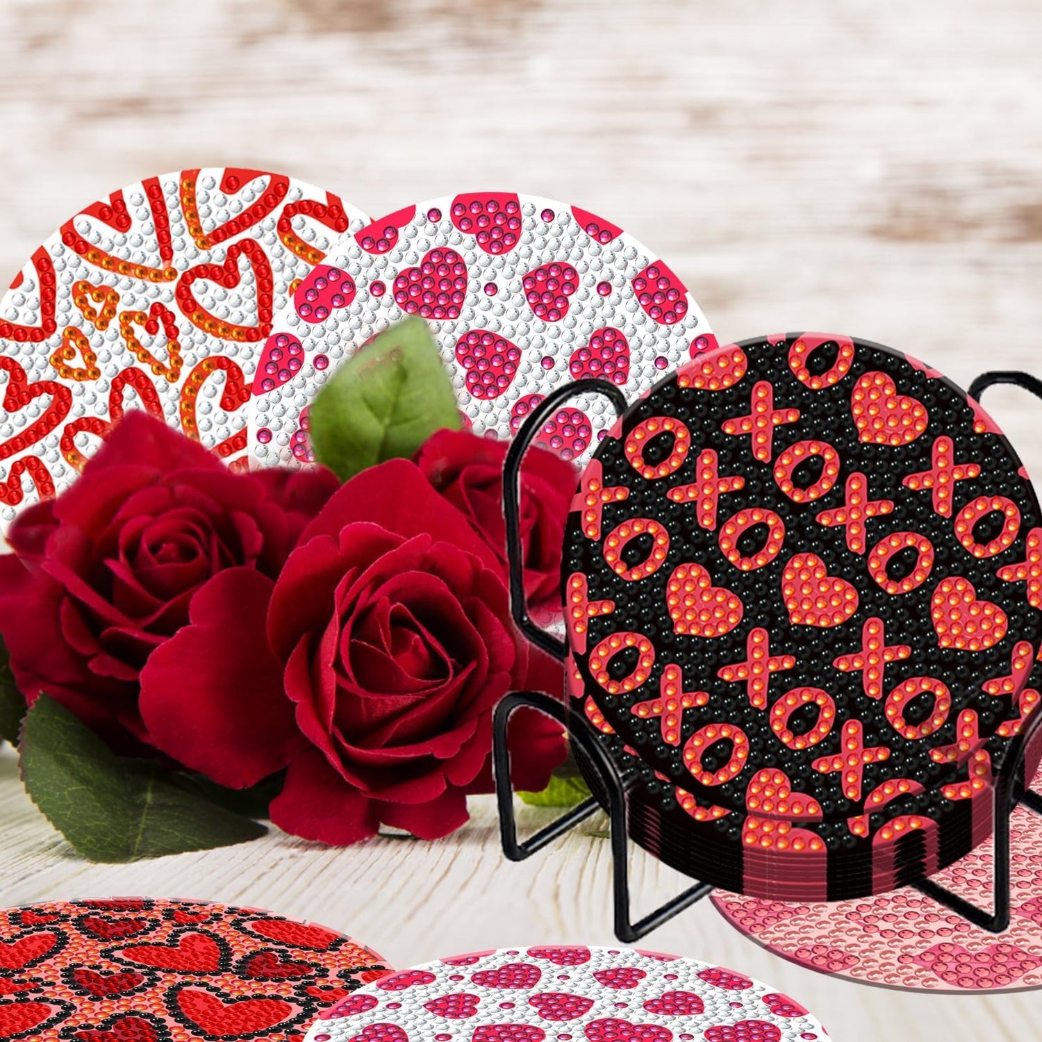 - 【Package Contents】: You will receive 8 pieces of Valentine's Day themed design diamond painted coasters, 1 coaster holder, enough colored diamonds, 1 clay adhesive, 1 pen and 1 diamond tray for your creative needs. In addition, we have many different styles of coasters for you to choose from.