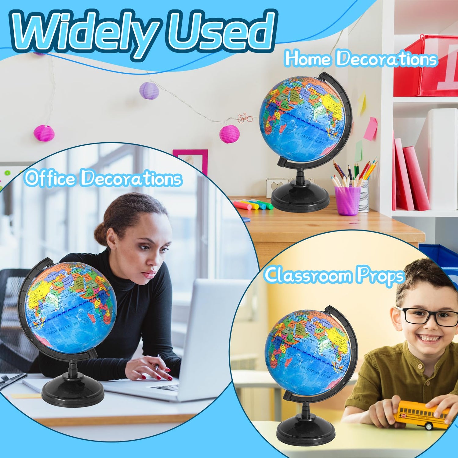 8'' Rotating World Globe with Stand,Decorative Spinning Earth Globe,Geographic Educational World Globe for Kids Classroom Tools,Desk Decorations,Gifts