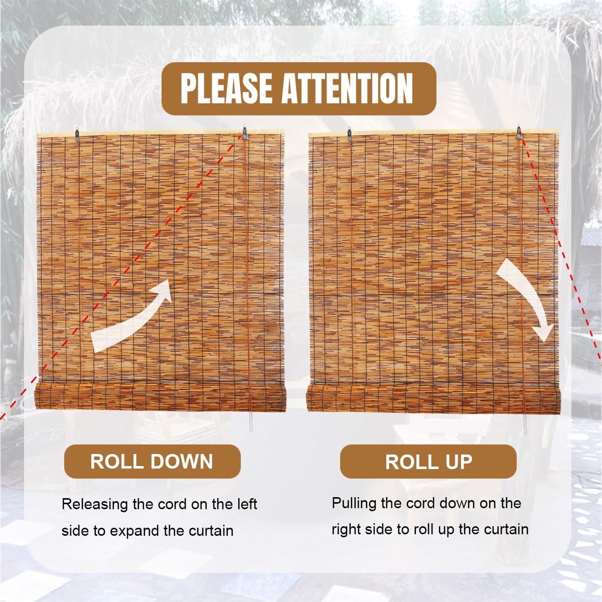 - 【Easy to Install】Our bamboo shades include all the necessary hardware in the package, which can be easily installed and moved, making it a breeze for you to decorate your home. And we use rolling mode, which also becomes easier when retracting.