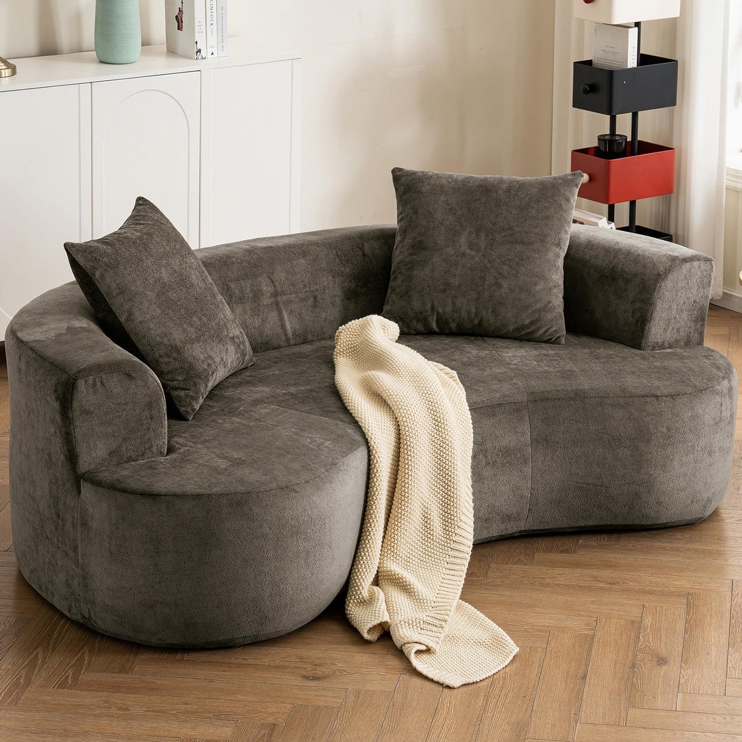 80” Curved Loveseat for Small Spaces, Grey Curved Couches for Living room, Compression Sofa in a Box with 2 Pillows, Small Couch for Bedroom with Wide Armrest & Memory Foam, No Assembly Required