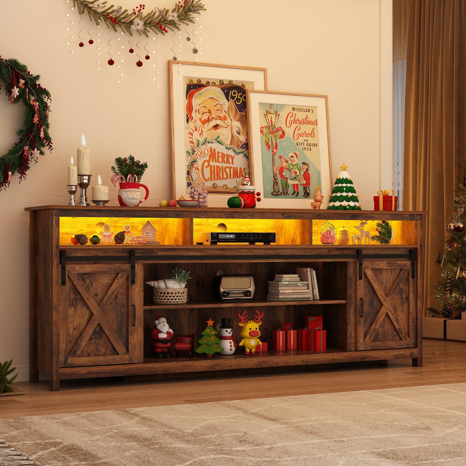 - Beautiful Family Christmas Gifts :Christmas 2024 is coming,maybe you could add a beautiful and practical piece of furniture as the Christmas gift for you family.70in Farmhouse TV Stand for Living Room,this 70in Modern TV Stand by Mobile APP and Remote control to control LED lights.The RGB lights can be changed at will, and the color of the lights can dance with the sound, which is a good companion for parties.