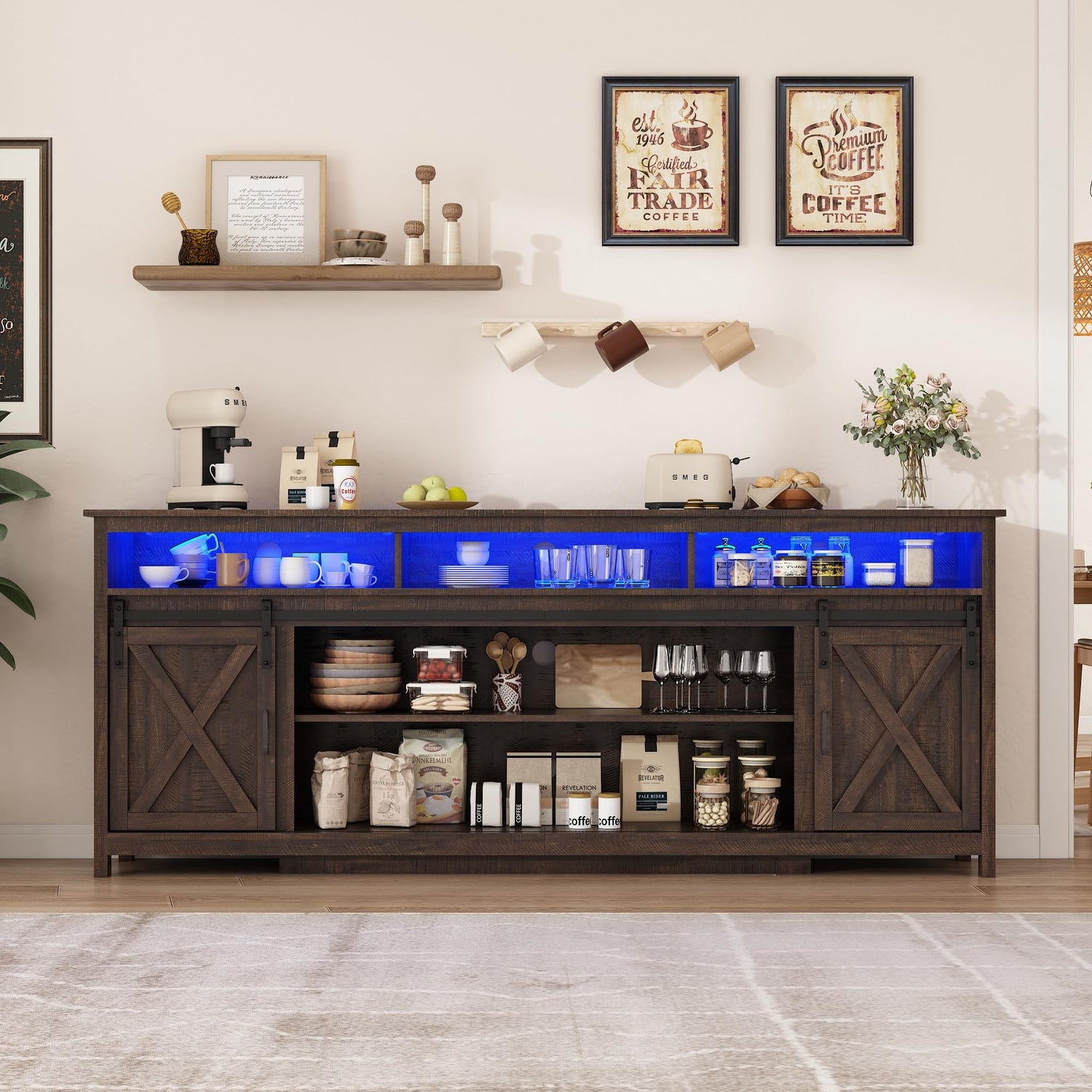 - Storage Cabinet,Sideboard Cabinet,Coffee Bar Cabinet :our TV cabinets use distressed knife cut grain craftsmanship, chic industrial and farmhouse styles, unique barn sliding door designs, and antique board finishes to provide a natural aging feeling, creating a comfortable and rustic atmosphere.This Sideboard can be used as a storage cabinet in the dining room, or bedroom. and also is a stylish Modern TV Stand for Living Room, den, or media room.