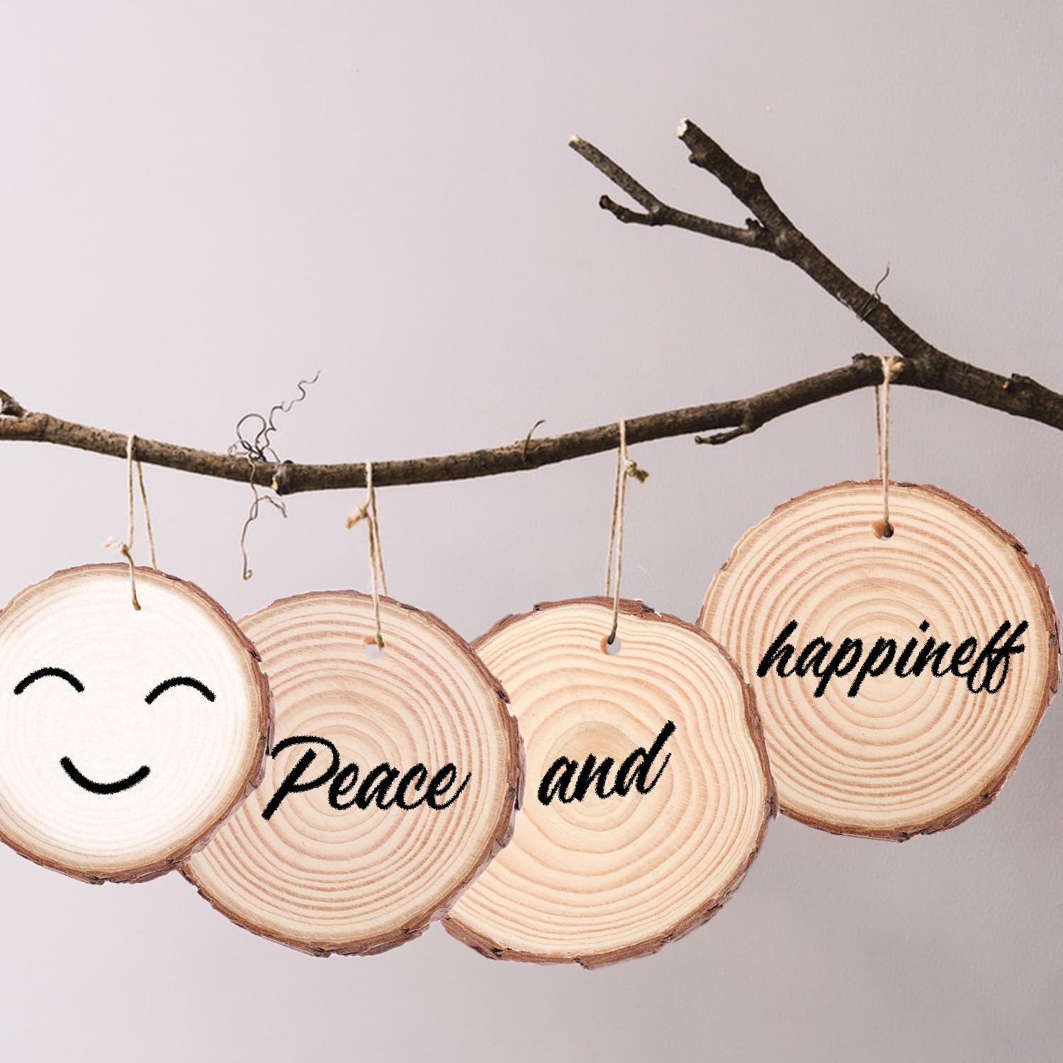 - 【 Easy to Use】 Each wood slice comes pre-drilled with a small hole and includes a roll of jute rope and a roll of red-and-white intersecting rope, making it convenient for you to hang your finished ornaments.