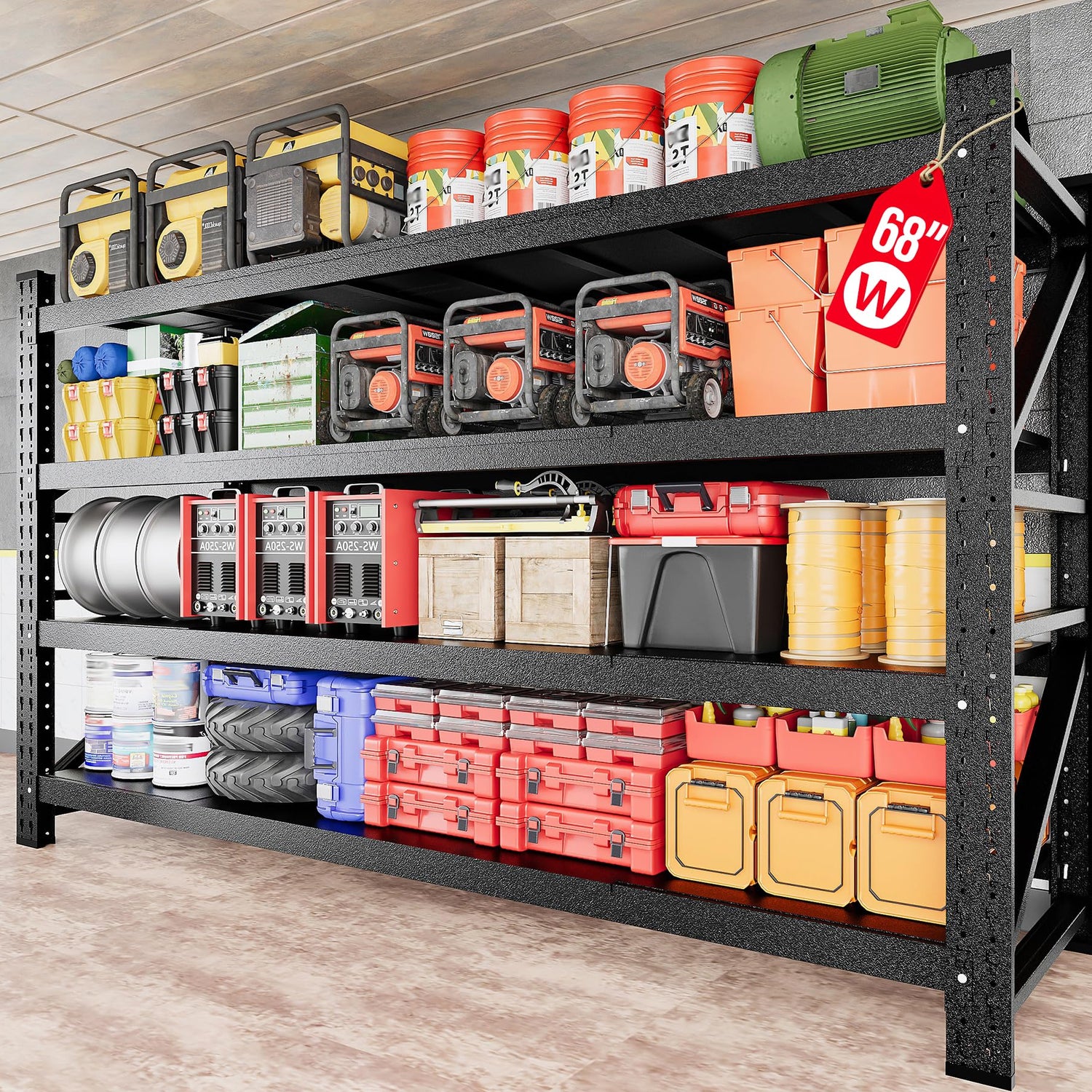 8000LBS Heavy Duty Garage Shelving Units,68" Wide & Deep Storage Shelves,Metal Garage Shelves,Large Storage Rack,Steel Shelf,Industrial Shelving for Shop,Warehouse,Basement,68" W x 24" D x 63.5" H