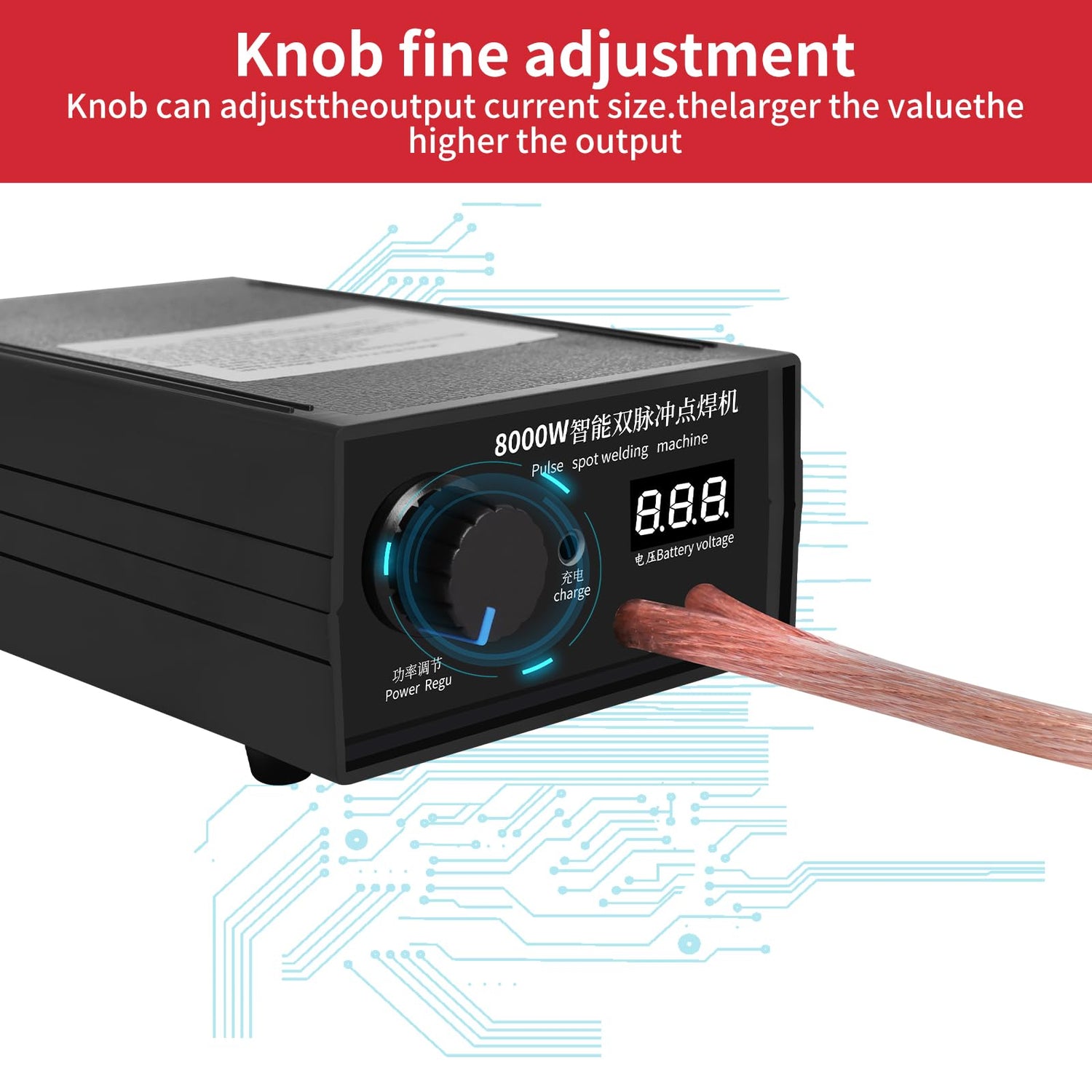 - 🚀【8000W Battery Spot Welder】:The upgraded spot welder with Dual Pulse Output,foot pedal welding mode which can easily weld 0.1-0.3mm thick nickel sheets, you can finish the welding work easily and efficiently, the welding spot is nice and elegant. Can be used for spot welding of batteries, hardware, and electronic components.