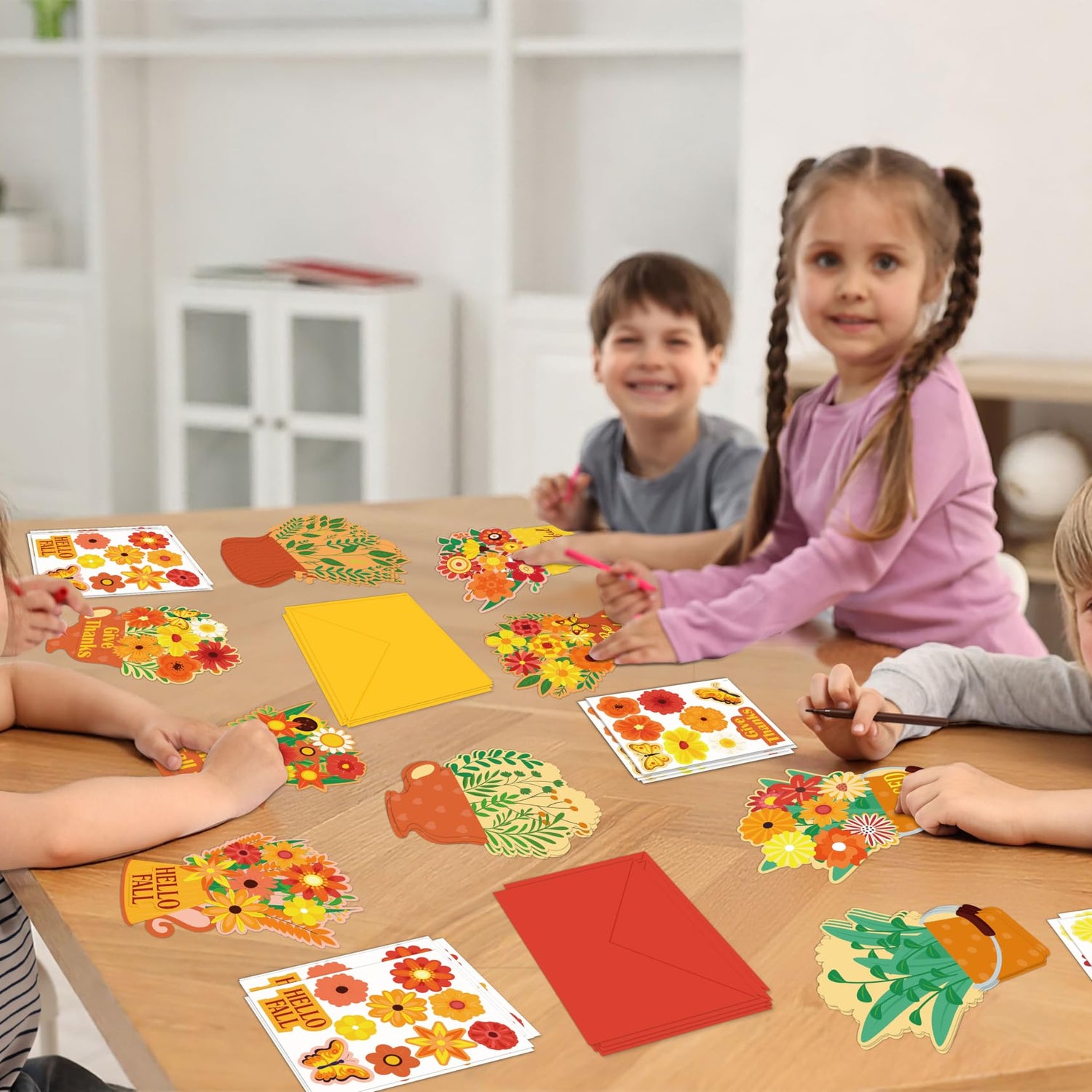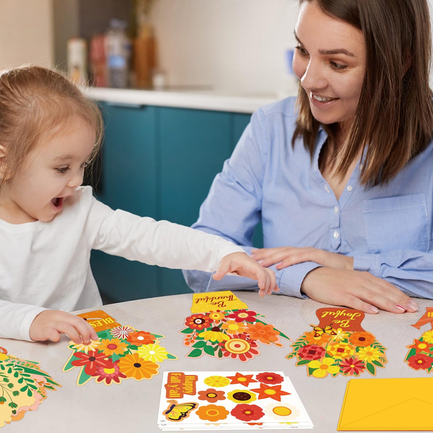 80UncleKimby 36 Set Fall DIY Craft for Kids - Thanksgiving Flower Card Making Kit with Autumn Greeting Cards Stickers Envelopes Set Gifts for Classroom School Activities
