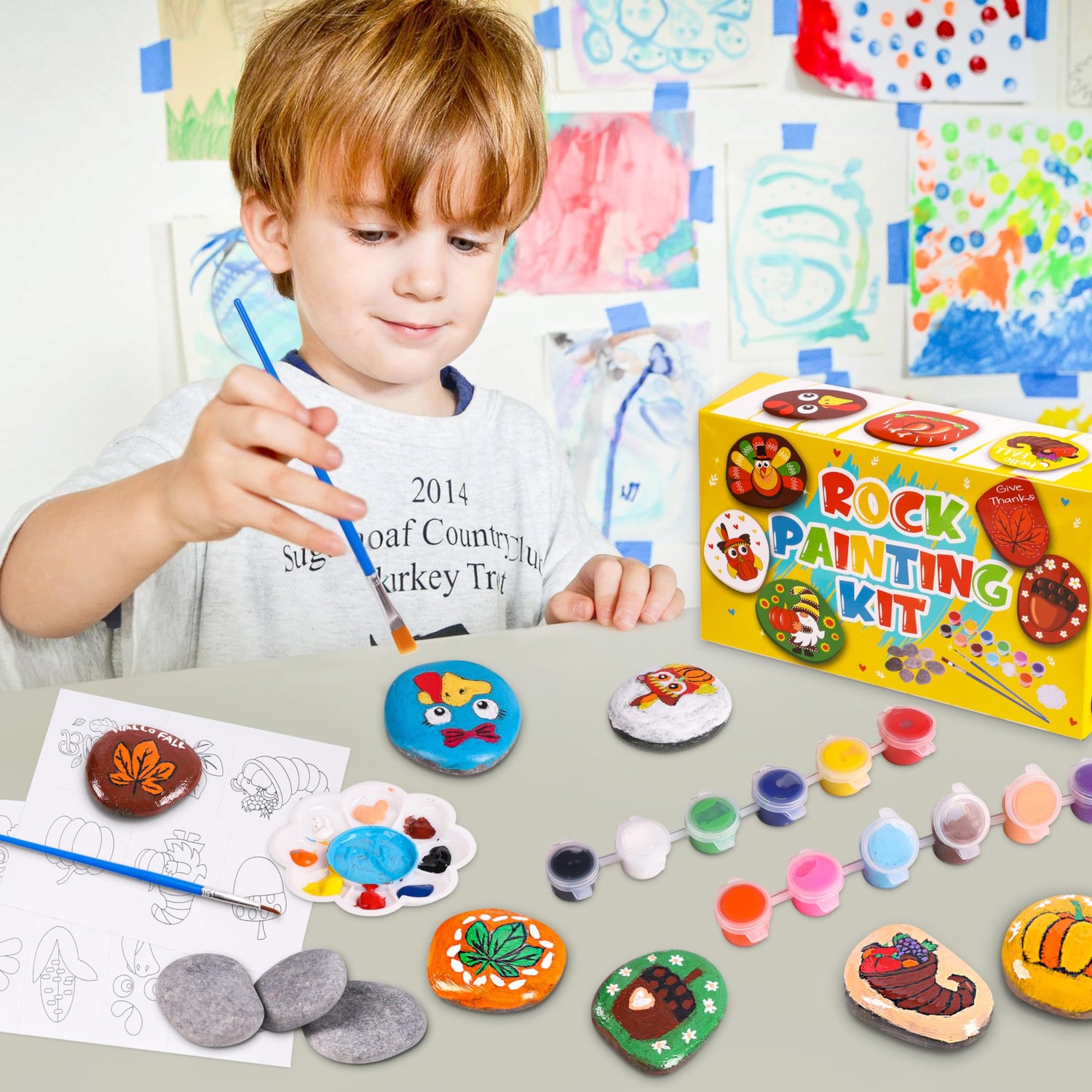 - Thanksgiving arts and crafts:This rock painting kit is for creative fun;Keep your kids busy and release their arts creativity and hands-on abilities;Even great for adults