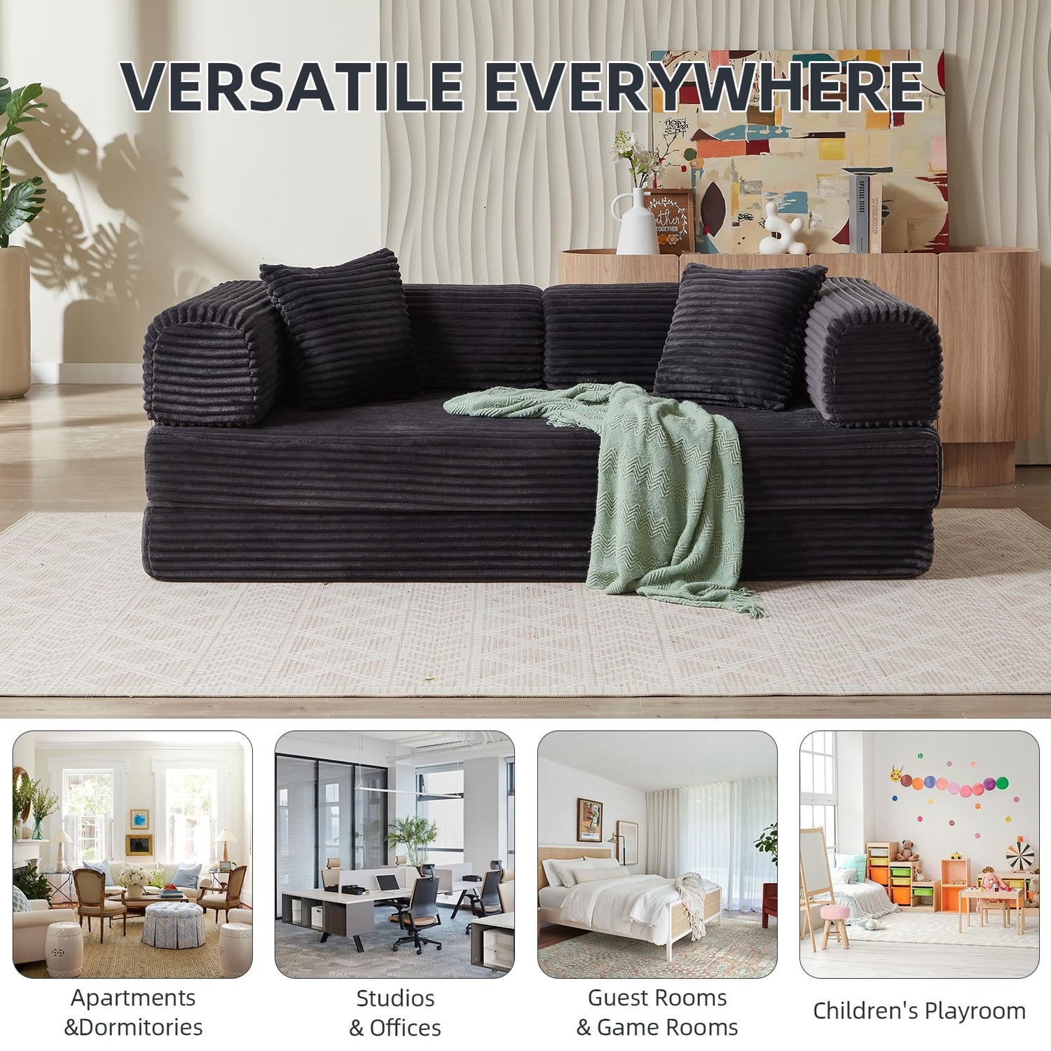 81 Inch Convertible Folding Sofa Bed,Fold Out Floor Sofa Couch with Fixed-Shape Frame,Corduroy Foldable Mattress Cloud Couch for Living Room Bedroom (Dark Grey)