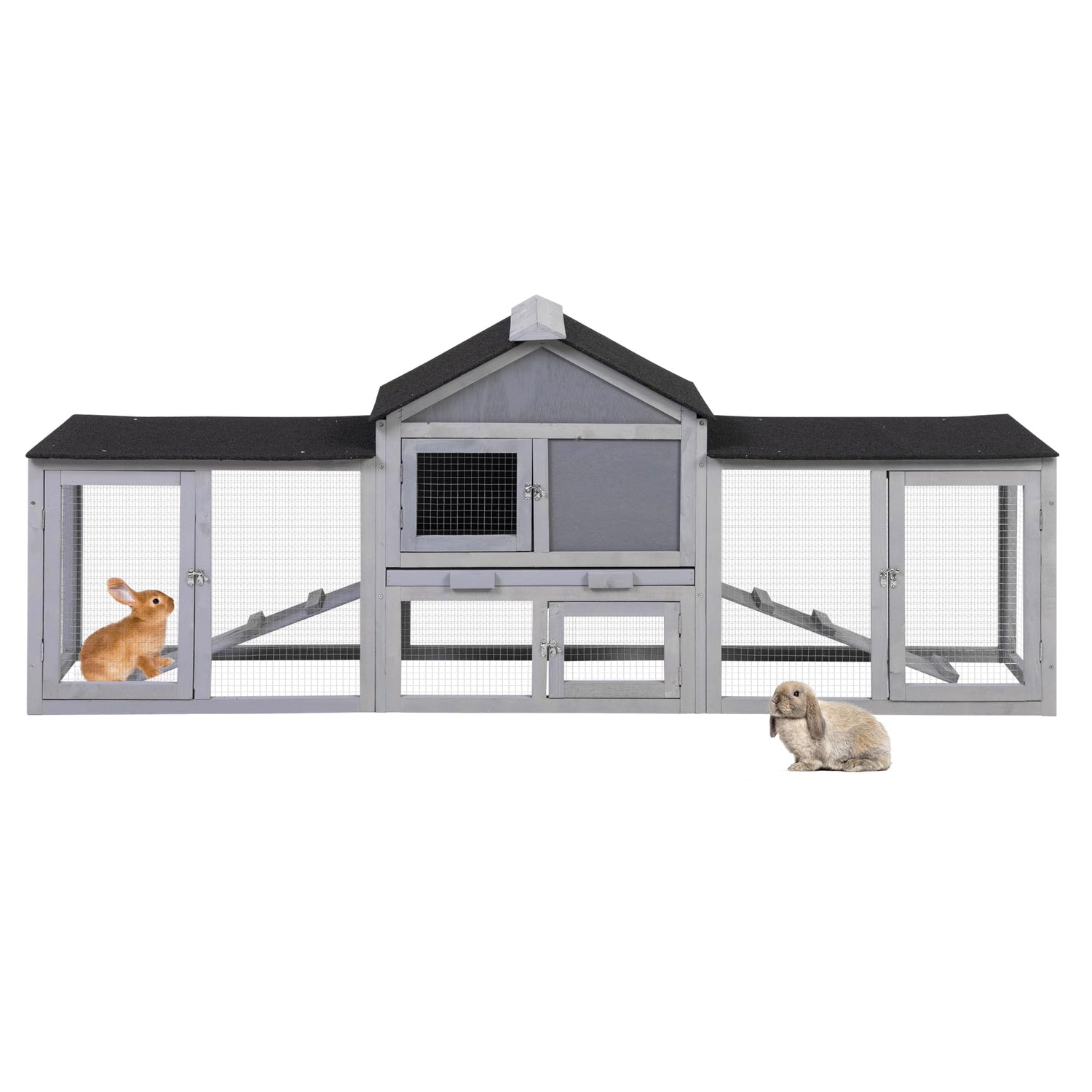 82.5” Large Wooden Rabbit Hutch Outdoor Easy to Assemble Rabbit Cage and Durable Bunny Hutch Indoor with Cleaning Tray & Waterproof Roof for Small and Medium Bunny Rabbit Chick (Grey)