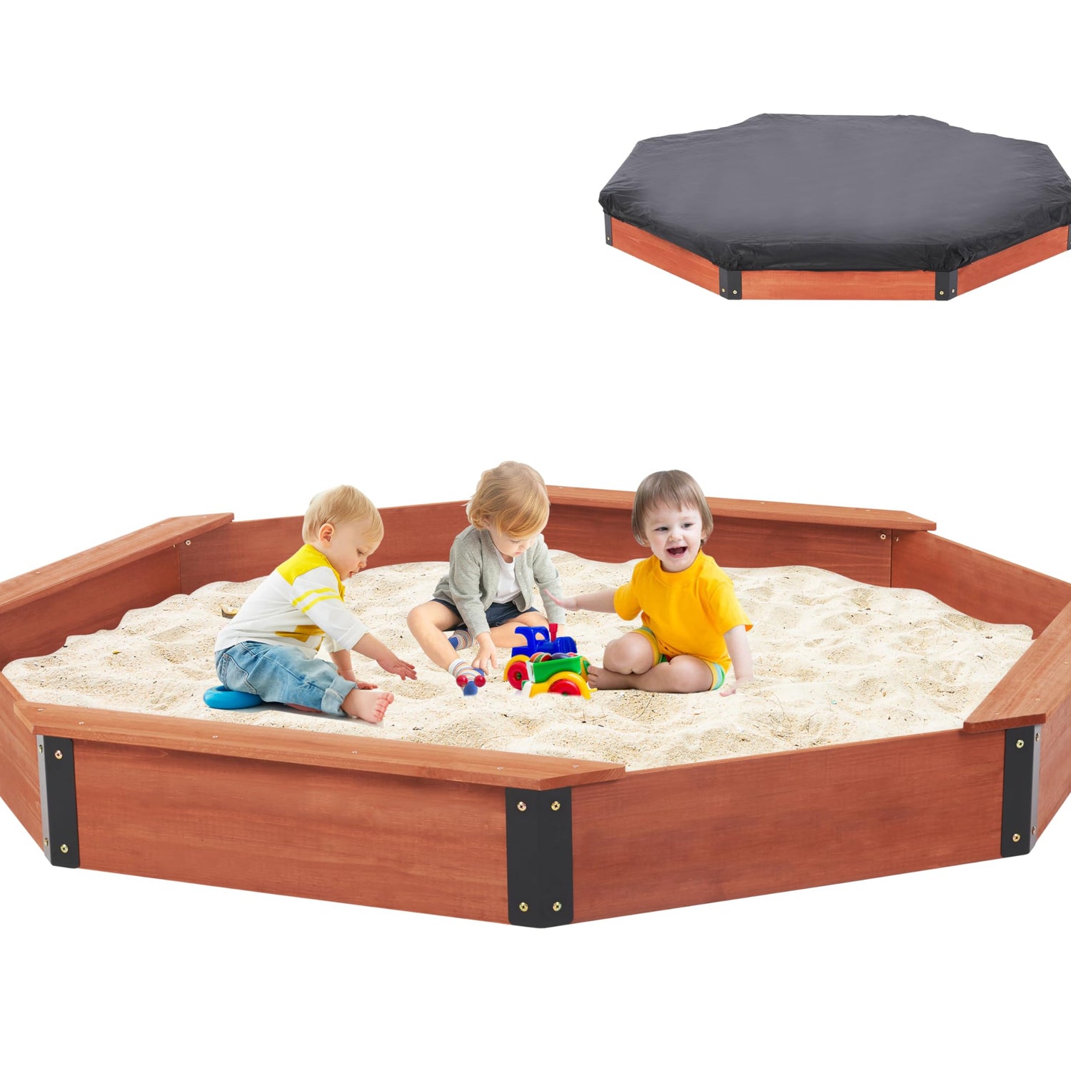 85''x78''x9'' Wooden Octagon Sandbox with Cover, Large Sandpit for Kids Outdoor Patio Backyard Play, Easy & Quick Assemble