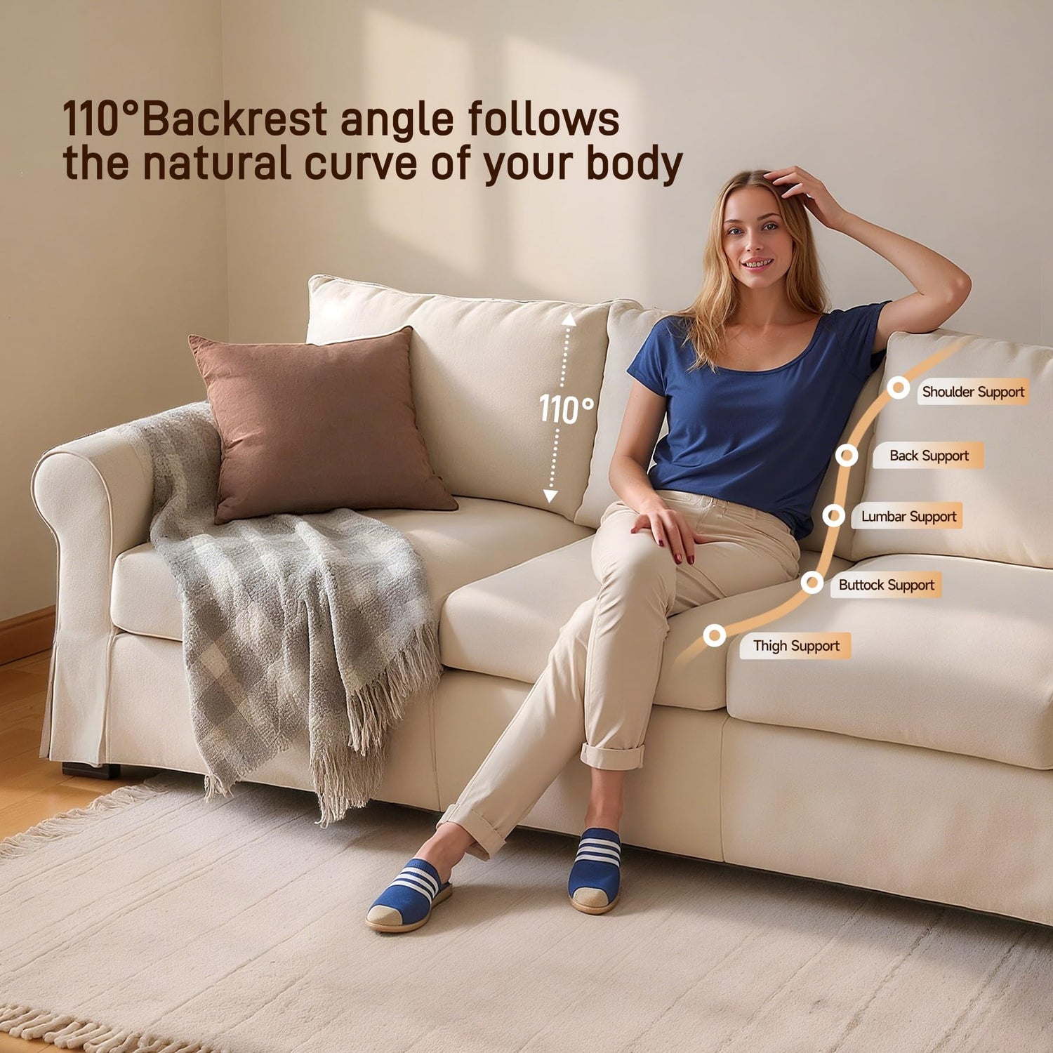 - 【Comfort & All-Day Support】Sink into 22.8" deep seats with medium-firm high-density foam cushions and 3 ergonomic back pillows. The 9.5" roll arm design and contoured lumbar support eliminate fatigue during movie nights or remote work. Unlike sagging sofas, our couches for living room retain shape even after years of use.