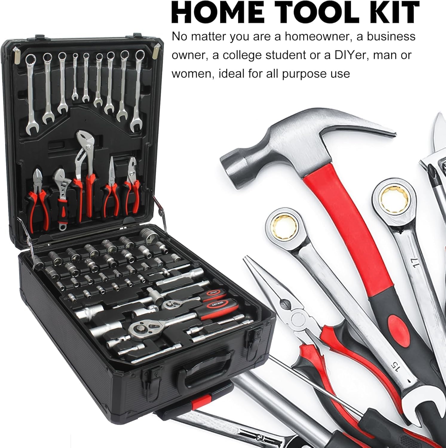 - [Sturdy Aluminium Lock] - The household tool set with lock, it does not accidentally open during movement which lead to a messy scattering of tools, safe and prevents tools from being lost.