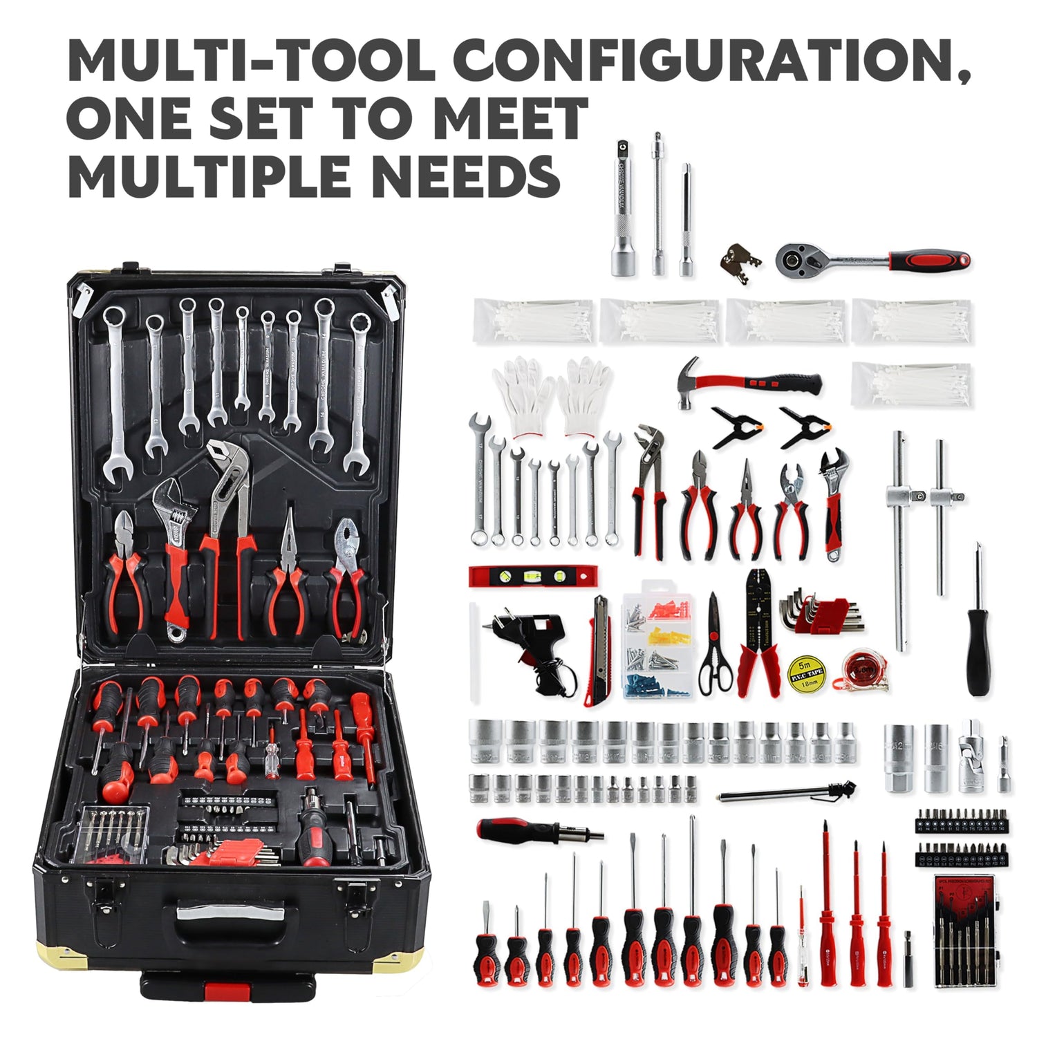 - [899pcs Complete Tool Box Set] - This 899 pcs Rolling Tool Chest contains the most useful tools for basic DIY household repairs, such as wrenches, screwdrivers, pliers, measuring tools and more.This craftsman tool set is very general and versatile for a wide range of industries and usage scenarios, suitable for professional and amateur and makes working hours easier and more efficient, accommodating your needs for most small repairs and DIY projects around the house (Note: 500pcs is the number of ties).