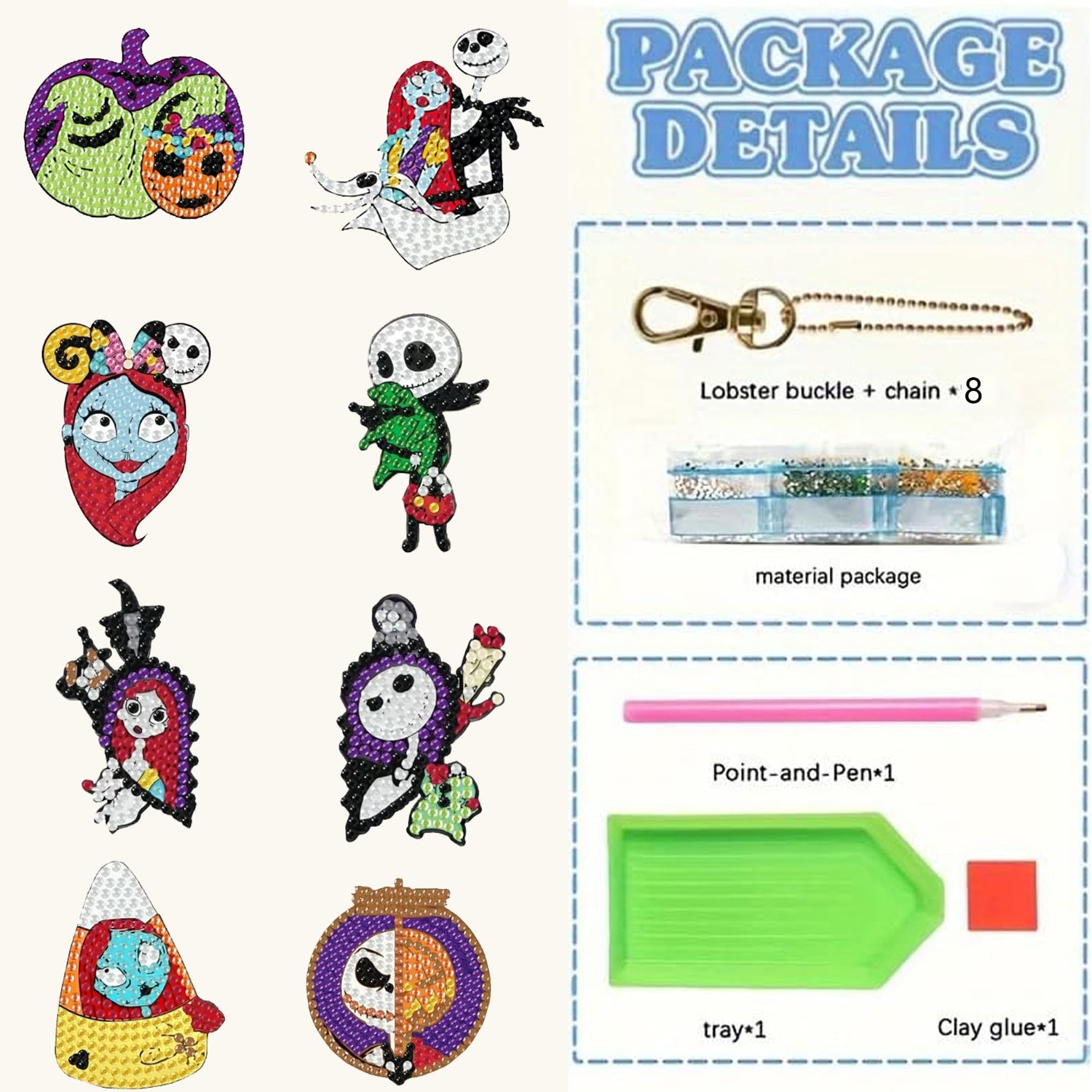- đăEnough to Use and ShareăYou will receive 8 pieces of halloween shaped diamond painting keychains in different styles, together with 1 set of accessory tools, sufficient to satisfy your DIY needs and crafts demands.