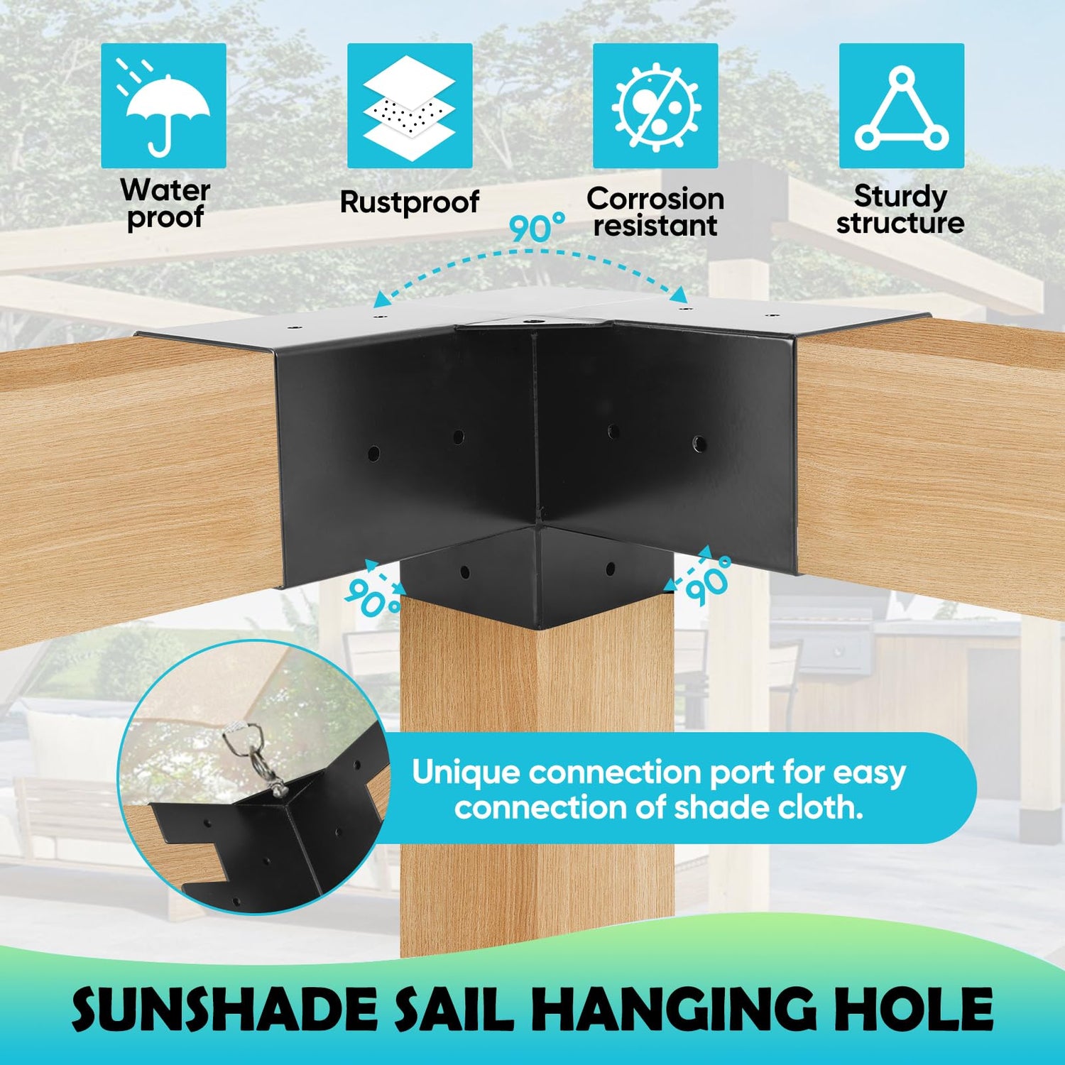 Details: 3-Way Corner Pergola Bracket Kits Our pergola brackets are made of durable galvanized sheet material and coated with anti-corrosion and anti-rust paint to protect them and prolong their service life effectively. The three-way right-angle bracket provides a reliable frame to keep your garden stable even in stormy and windy conditions.