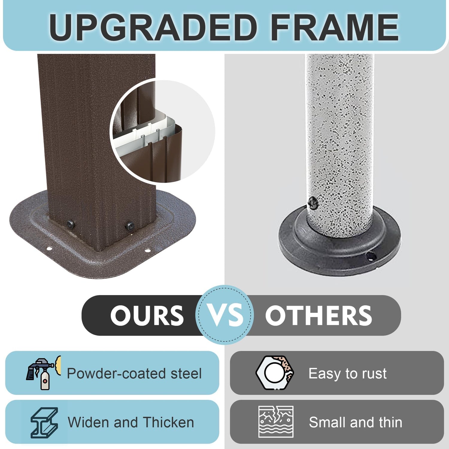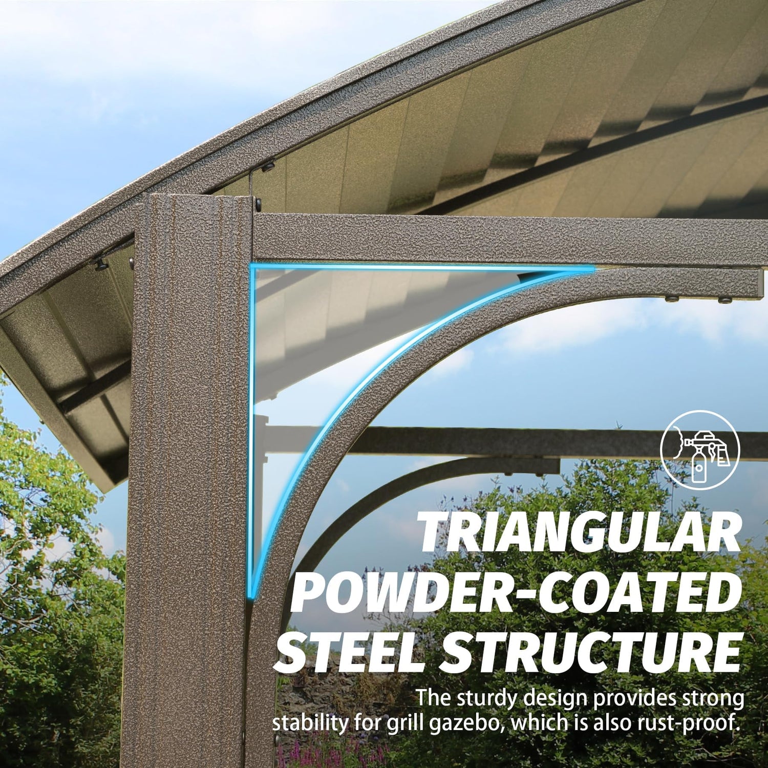 - โ ๐๐๐ฅ๐ฏ๐๐ง๐ข๐ณ๐๐ ๐๐ญ๐๐๐ฅ ๐๐จ๐ฎ๐๐ฅ๐ ๐๐จ๐จ๐: Our 8'x5' hardtop grill gazebo features a galvanized steel double-layer roof design that not only blocks harmful UV rays but also promotes airflow, effectively dispersing smoke and heat while grilling. This ensures a comfortable and enjoyable BBQ experience. The curved roof drainage system quickly channels rainwater, extending the lifespan of your outdoor grill gazebo.