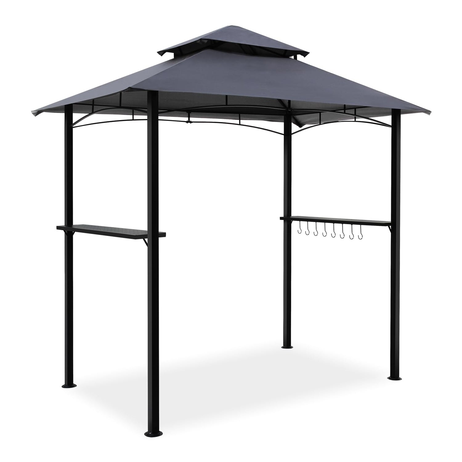8x5 Grill Gazebo, Outdoor BBQ Grill Patio Canopy with 2 Handy Shelves & LED Lights, Double Roof Barbecue Gazebo Canopy (Gray)