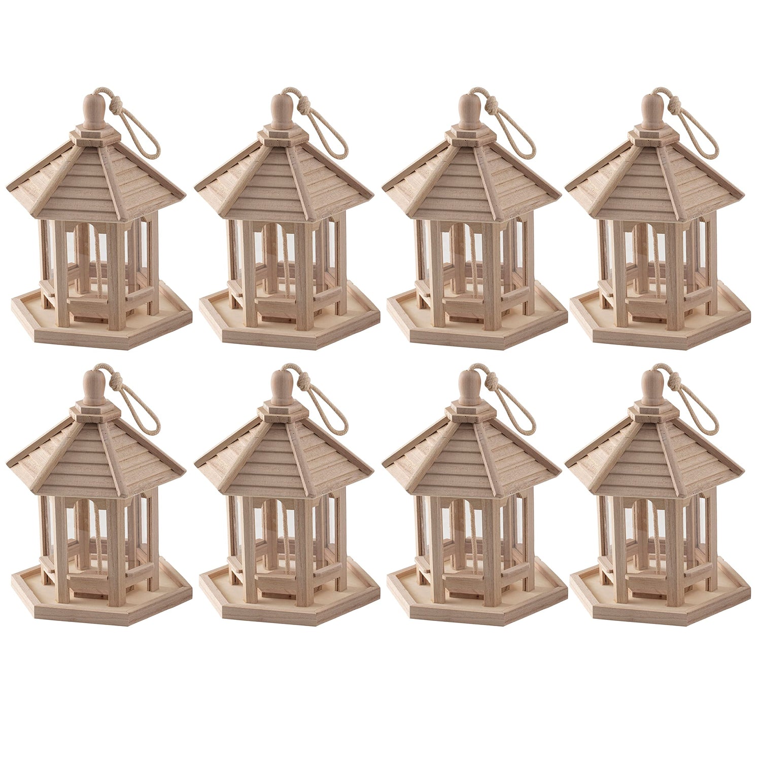 9.5" Wooden Gazebo bird feeder by Make Market - Unfinished Hanging Birdhouse Made of 100% Wood, Outdoor Nesting Boxes - Bulk 8 Pack