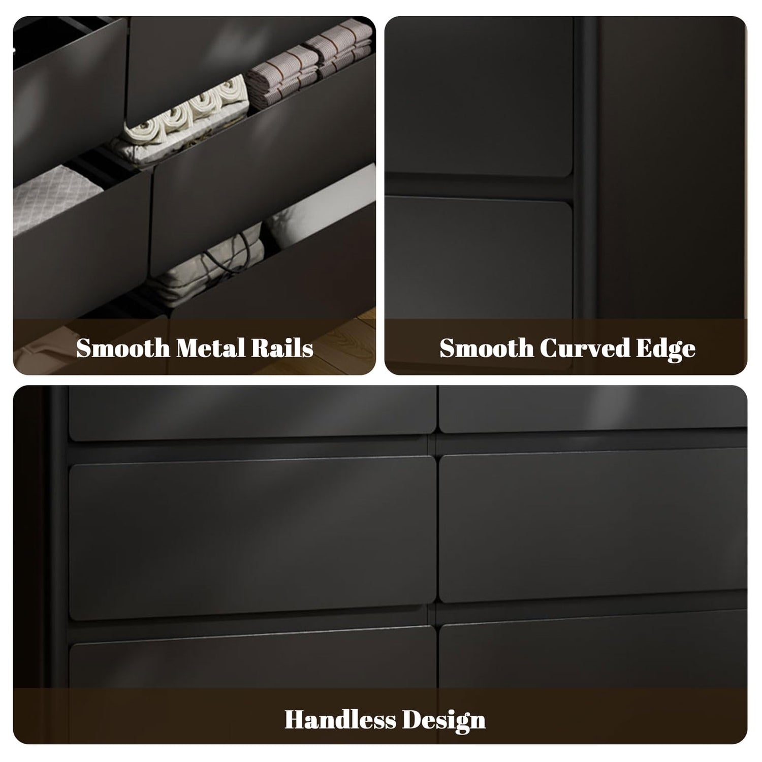 - 【User-Friendly Design】Designed with hidden handles, each drawer offers a sleek, modern look that enhances your home’s aesthetic while preventing accidental scratches from protruding grips,ideal for families with kids or pets. Pre-installed with smooth metal slides, the drawers glide open and close effortlessly, ensuring a seamless experience every time. Even with heavy use, these durable slides remain undamaged, protecting the furniture and providing long-lasting performance.