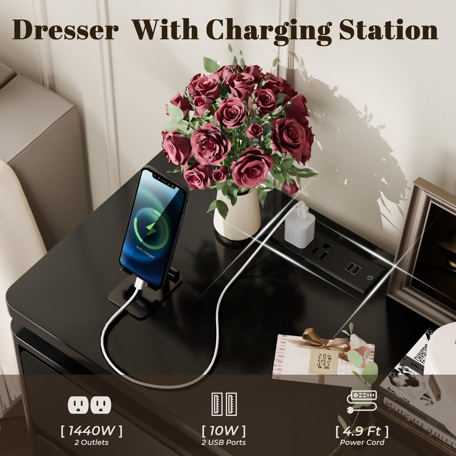 - 【Built-in Charging Station】Our closet dresser is designed with a built-in charging station right on the countertop,making it the ultimate blend of style and convenience. With two AC plugs and two USB ports, you can easily charge your laptop, smartphone, tablet, or any other small device without needing extra chargers. The 6.56-foot-long power cord gives you the flexibility to place the dresser exactly where you want it, while keeping everything neatly organized.