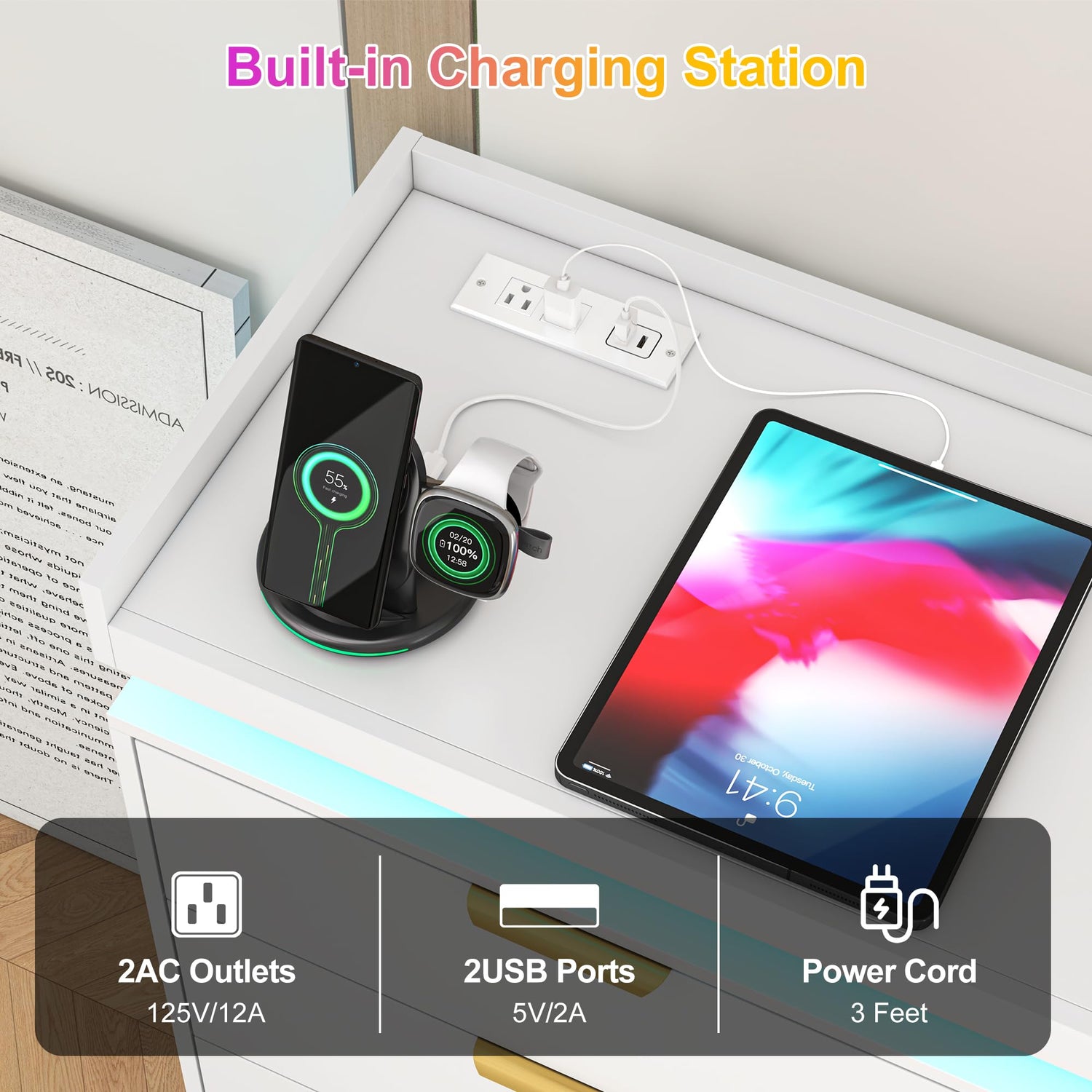 - 【Dresser with Charging Station】Knoworld dresser for bedroom equipped with a built-in power outlet, which creates convenience for device charging. It has 2 AC outlets and 2 USB ports, make sure you can charge your laptop, mobile phone, desk lamp and other small appliances anytime, anywhere, without the hassle of searching for outlets.