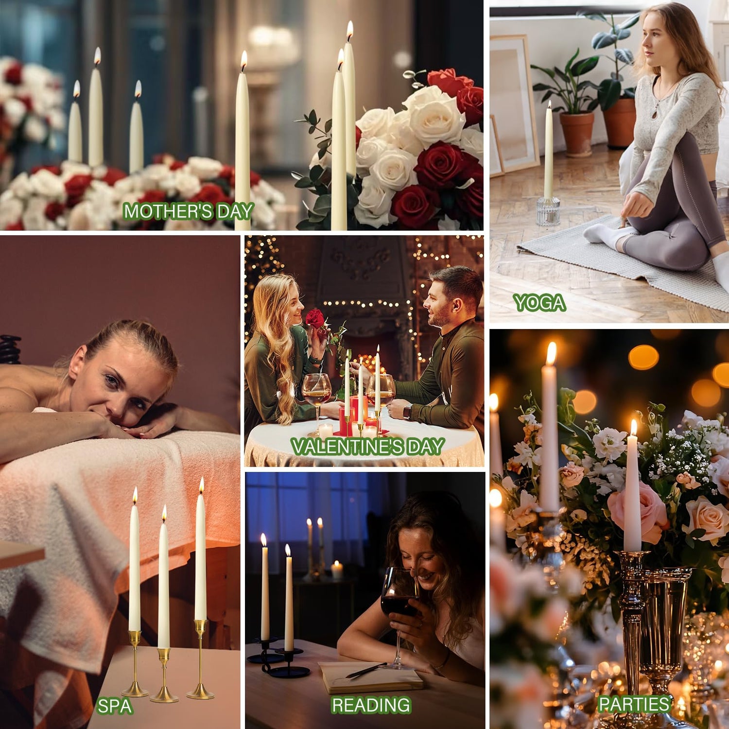 • Pure Beeswax and Cotton Wick Taper Candlesticks: Beeswax taper candles is made of 100% all-natural premium beeswax, made through a four-time filtration process, paraffin-free,Fragrance-free,100% cotton candle wick, lead-free. Beeswax releases negative ions when burning, which helps to clean the air while producing a pleasant natural beeswax scent. The natural scent and color can create a comfortable, relaxing and warm atmosphere for any occasion