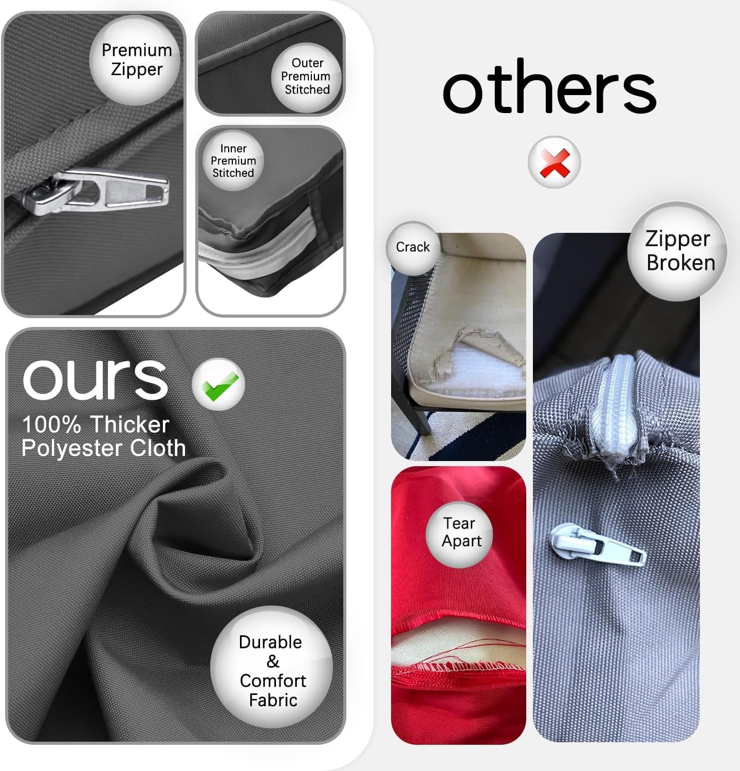 - UV Resistant,Fadeproof,Outdoor Use: Our cushion covers are made of fabric with a uv-resistant coating that ensures they won't fade in the hot summer sun, you can apply it at spring, summer, fall, winter.. our cover give you a comfort using! your best choice for outdoor use. Premium covers like a shield for cushions