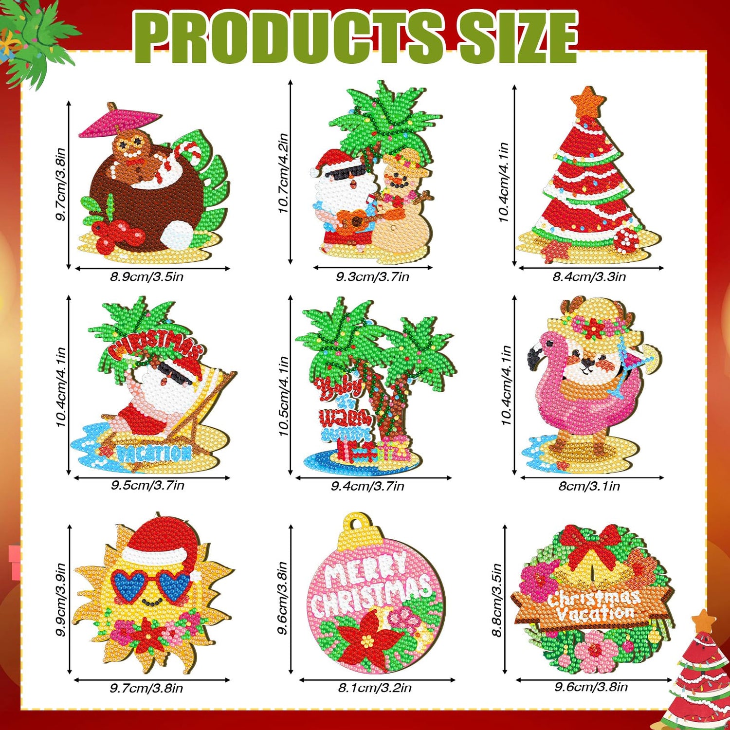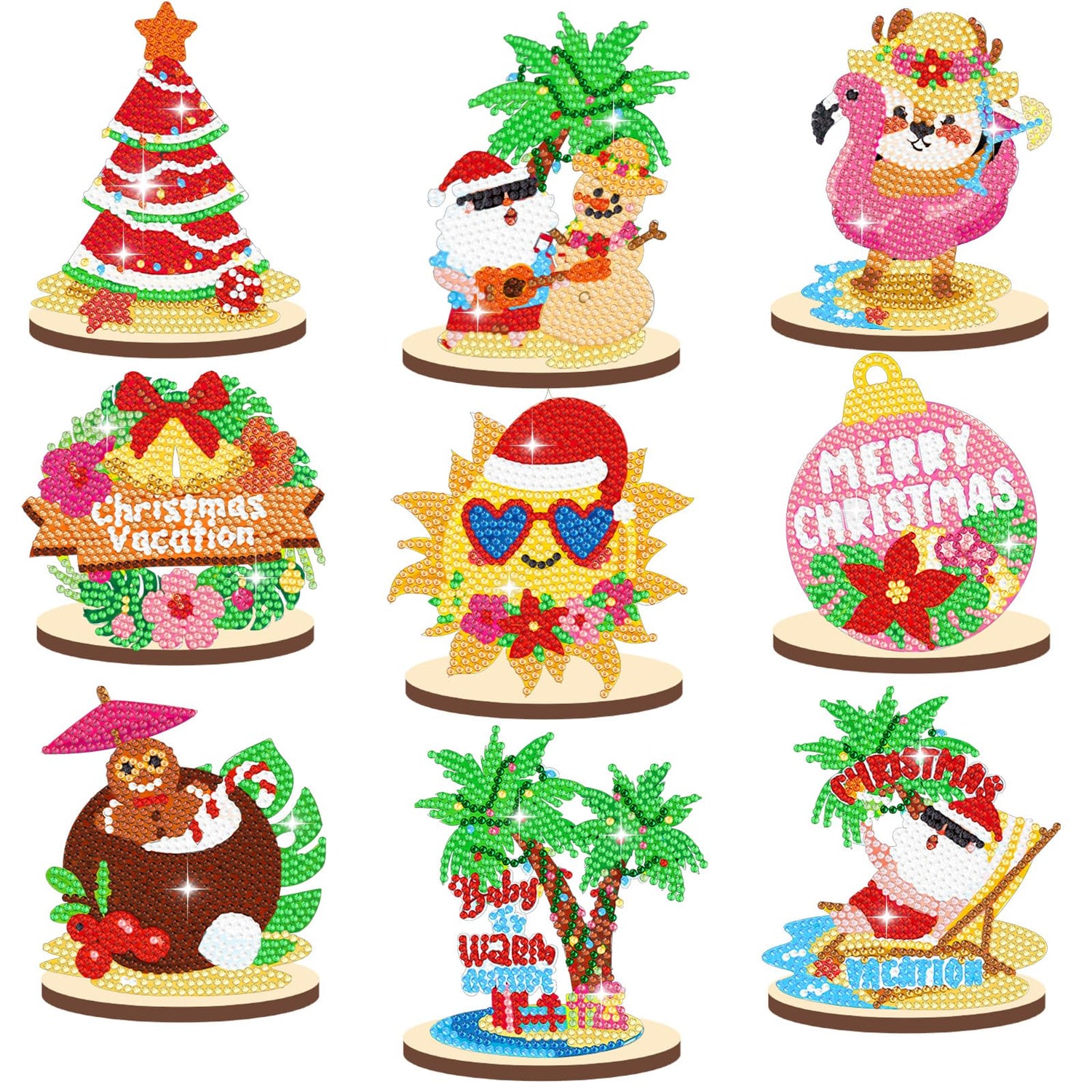 - DIY Diamond Art Set: the package includes 9 pcs Christmas diamond art kits, including 9 wooden bases, 1 set of colored diamonds, 1 clay adhesive, 1 pen, and 1 diamond tray; Maximize your creativity and daily needs for an easy yet fun DIY crafting experience