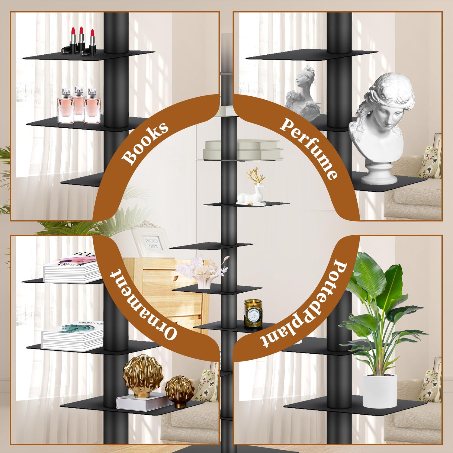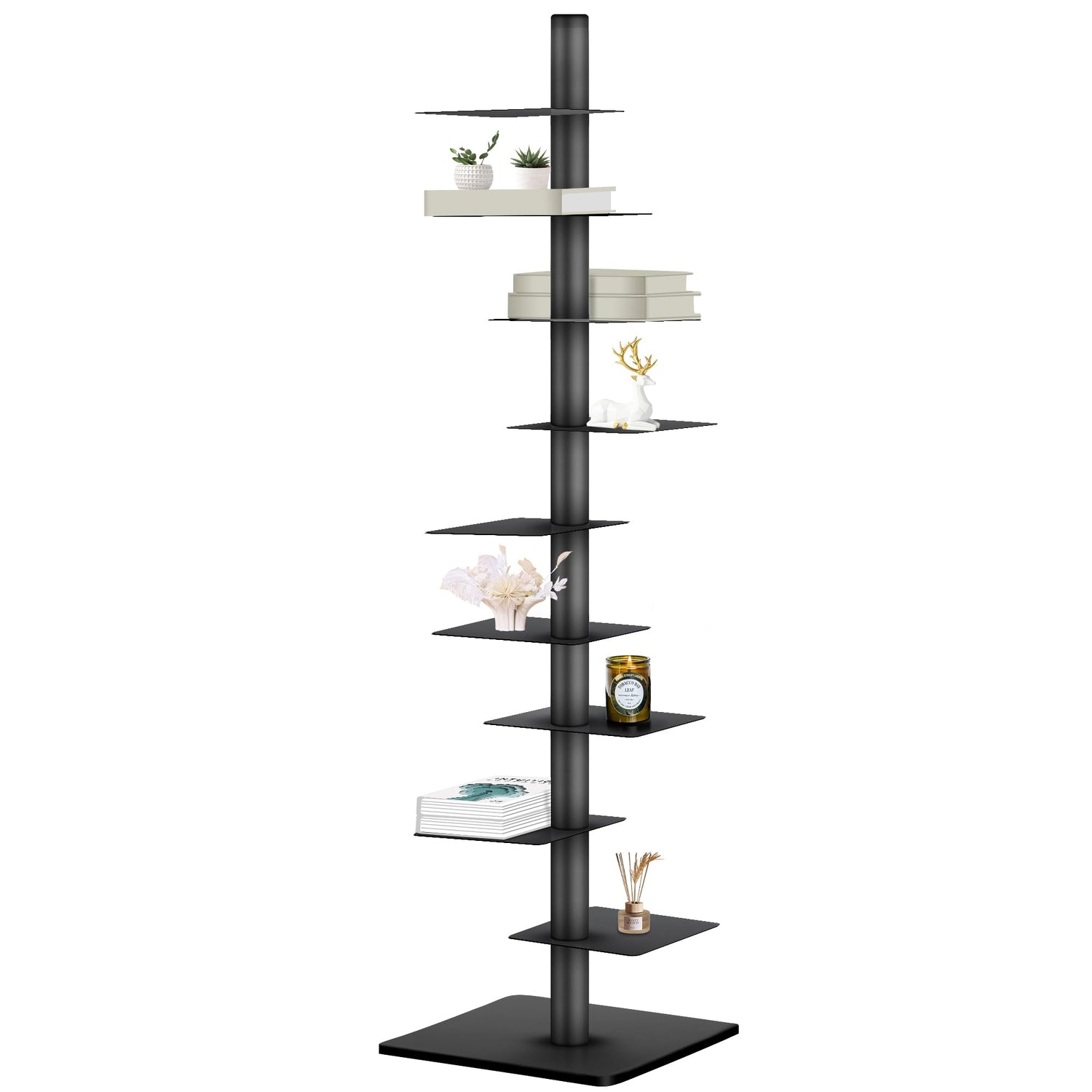 9 Tier Metal Vertical Bookshelf Tower, Freestanding Invisible Spine Bookshelf, Tall Ladder Bookcase Floating Shelf for Small Spaces, Modern Storage Corner Shelf for Living Room, Office, Bedroom Decor