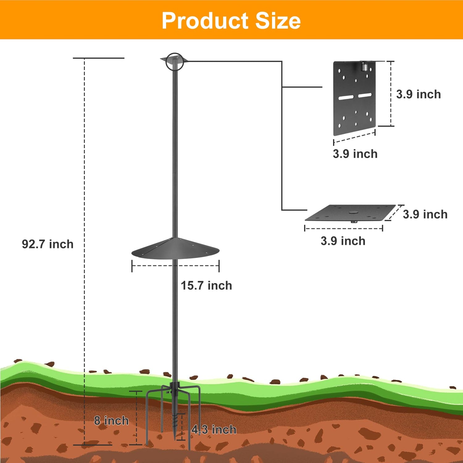 - ADJUSTABLE POLE HEIGHT: The outdoor heavy duty bird feeder pole for outdoor consists of 7 sections, each section of the bird feeder post mount is threaded to connect to each other, up to 92 inches high, allowing the height of the pole for bird feeders for outside to be easily adjusted by adding or removing sections to your desired length.