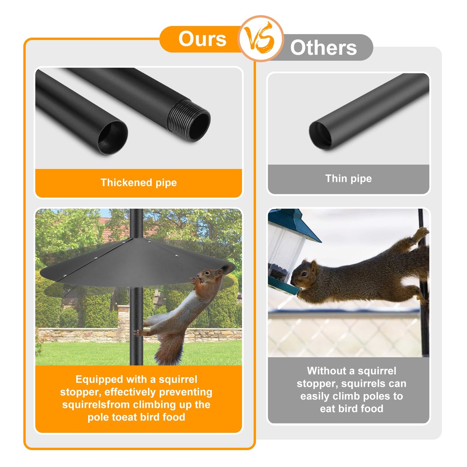 - WONDERFUL GARDEN PRESENT: This multifunctional bird feeding pole can be used to decorate your garden or yard, it can not only hang bird food and installs smart bird feeders to watch wild birds, but also drive away the nasty squirrels that steal bird food. bird house pole for outdoor makes a great gardening present for friends, relatives, bird lovers, etc.