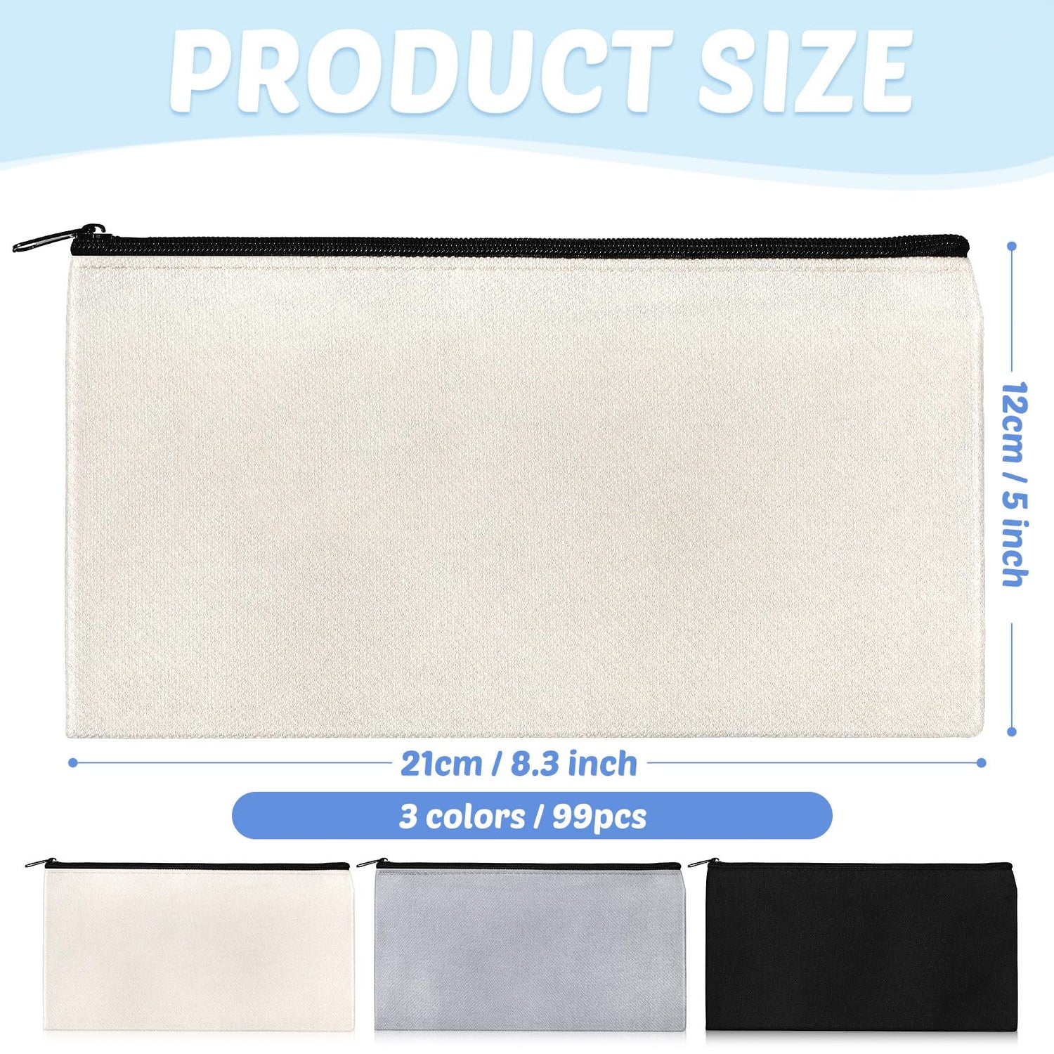 99 Pack Blank Canvas Bag Bulk DIY Craft Canvas Zipper Pouch Sublimation Blanks Canvas Makeup Bag Canvas Pouch Pencil Bag Cosmetic Travel Toiletry Storage Zipper Bag 8.3 x 5 Inch(Gray, Black, White)