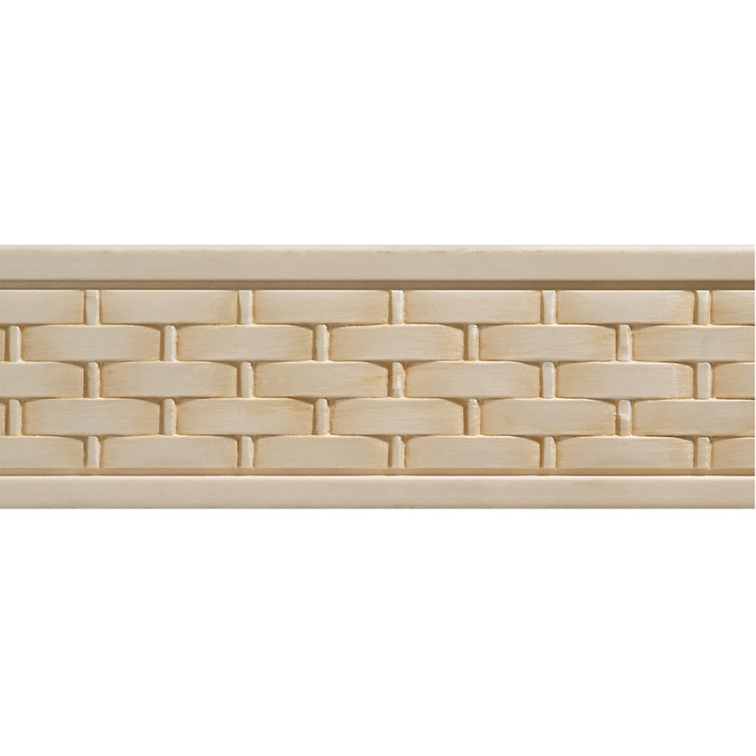 Details: Add a decorative touch to your home's interior and help protect walls from furniture with Natural White Hardwood Chair Rail Mouldings. This 2-1/2 inch Embossed Basketweave Moulding makes an excellent traditional chair rail moulding in any room. Install a few inches below a crown moulding to create a stunning built up effect at the ceiling - simple yet bold. Embossed decorative mouldings add a finishing touch to any craft or DIY project. Classic in its look and design, this moulding paints and shows the depth of the pattern detail to perfection.