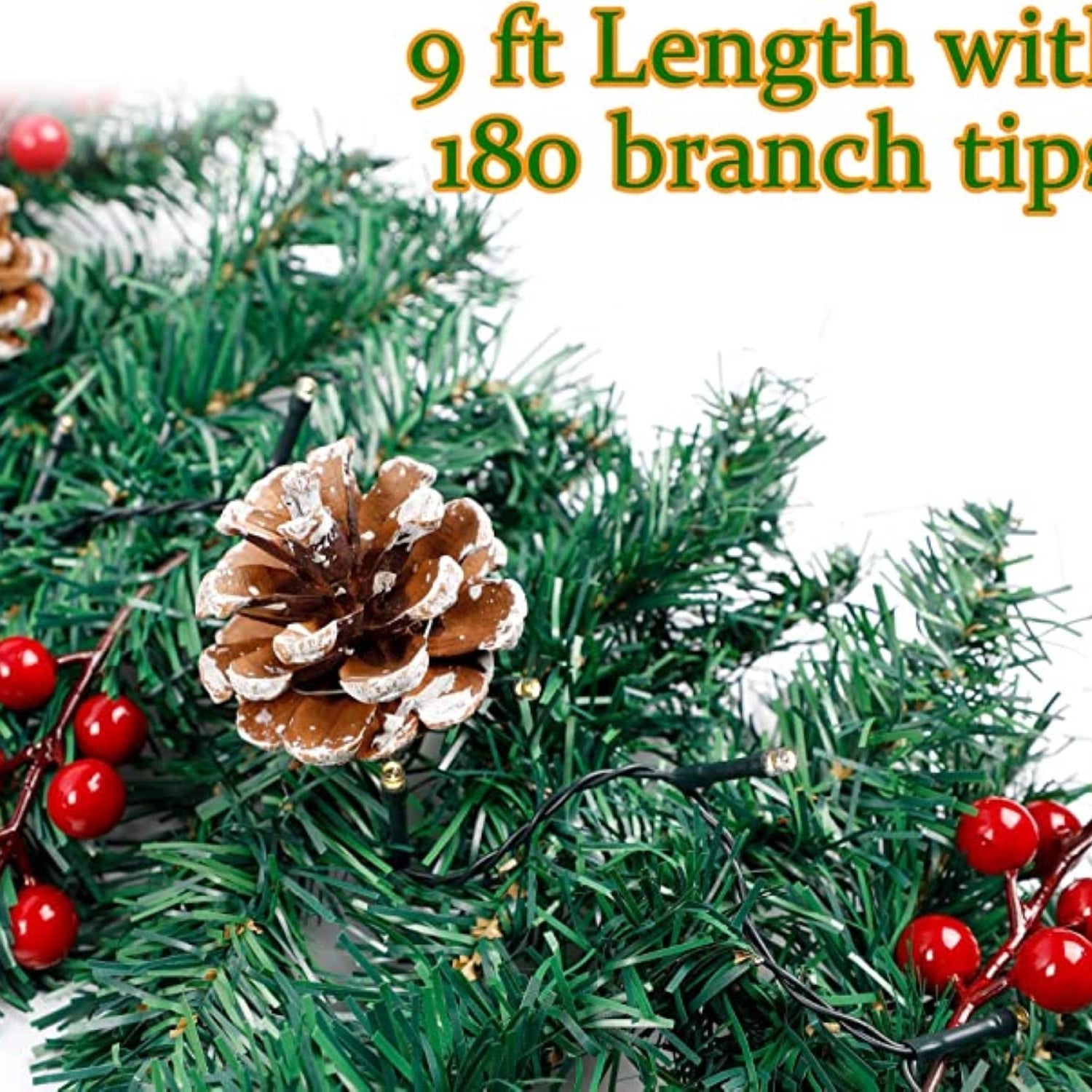 - 9 FEET CHRISTMAS GARLAND: This Christmas garland measures 9 ft. Length with 180 branch tips, provides you with a lot of freedom to use it wherever you please. Unlike other garlands, our product won't fall apart, allowing you to utilize all 9 feet, both indoors and outdoors!