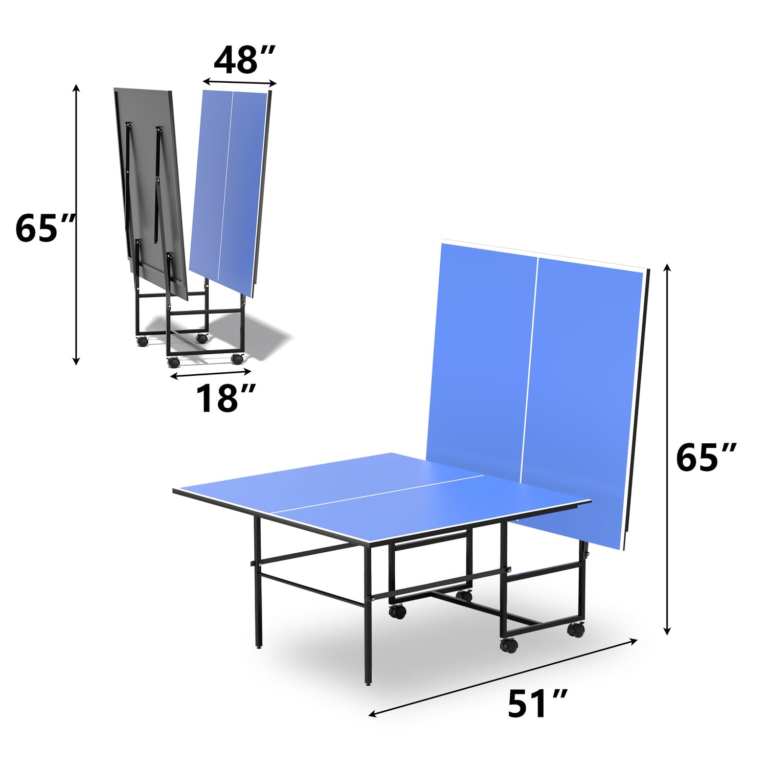 - ❥【Table Size Specifications】: 9'x5' Medium Table Tennis Table Made of 12MM MDF Table Thickness: 1/2 Inch Package Includes: 1 Table Tennis Table, 1 Set of Net and Posts, 2 Table Tennis Paddles, 3 Balls.