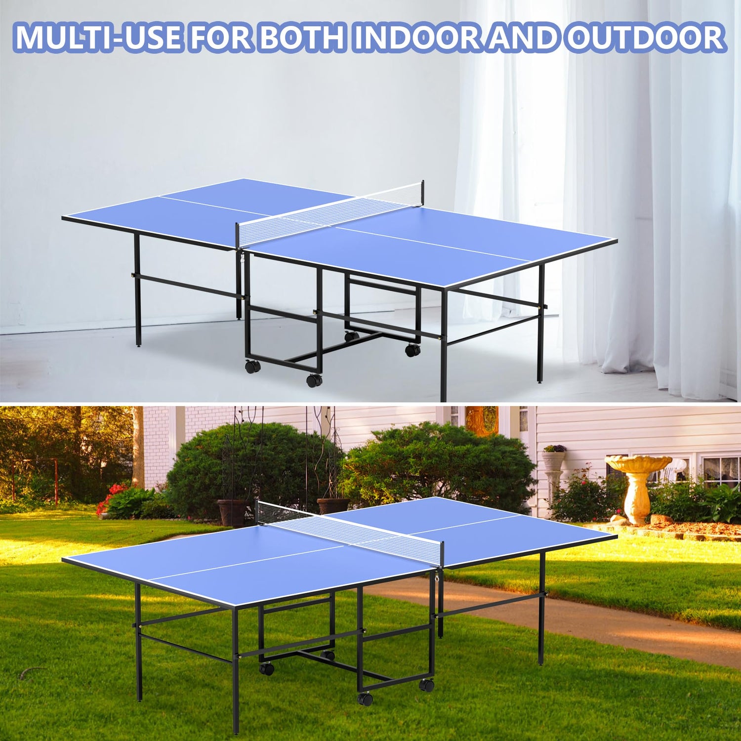 - ❥【Easy to Store】: Our table tennis table can be folded up, and the double locking mechanism can keep it folded for easy storage; there are wheels at the bottom, which can be locked, which can be easily moved and fixed in storage location or on the playing field.