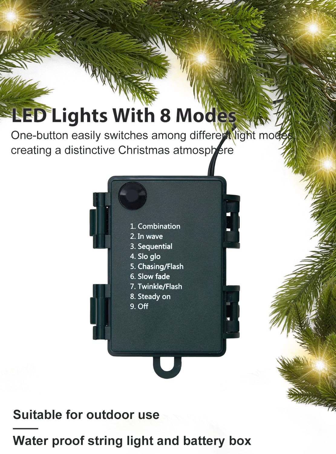 - 【Christmas Garlands with Lights】A 9ft realistic high-quality Christmas garland, pre strung with 2.5m long warm yellow LED lights (The light string needs to be installed by oneself) ,illuminates your warm home and adds a shiny appearance. The battery operates in multiple modes and can adjust the lighting mode according to your preferences (excluding the battery`).