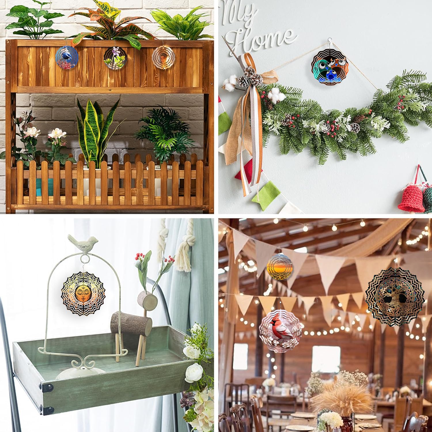9PCS Sublimation Wind Spinner Blanks Set, 3D Aluminum Hanging DIY Crafts Ornaments for Indoor Outdoor Terrace Garden Heat Press Transfer Sublimation Blanks Wind Spinners
