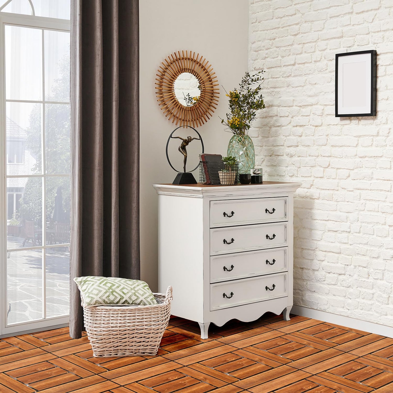 9Pcs Wood Interlocking Deck Tiles,Flooring Tiles, Tiles Interlocking Waterproof for Indoor and Outdoor, Patio Wood Flooring for Patio Porch Poolside Balcony Backyard (11.8"x11.8" -Checked Pattern)