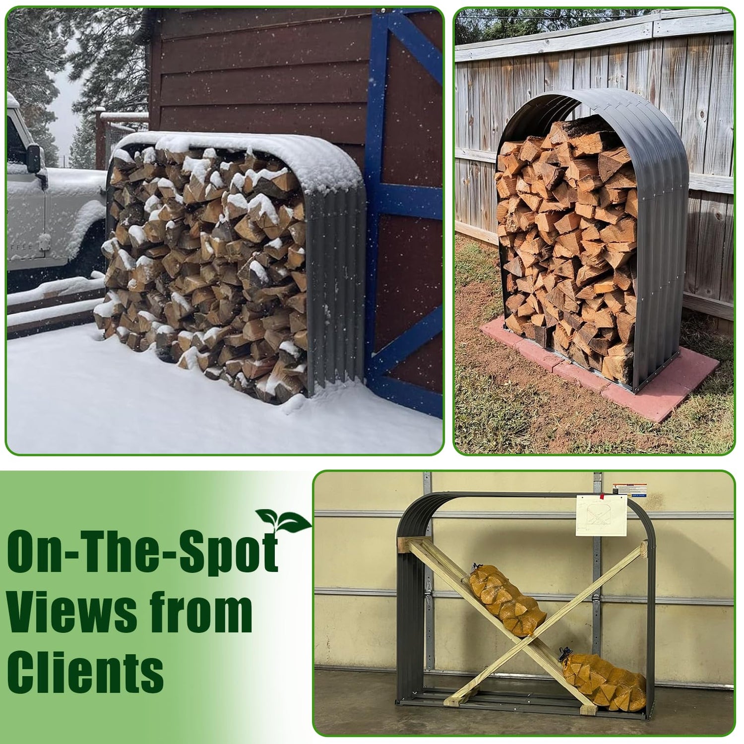 - Backyard log storage metal shed is engineered to keeps your firewood dry, accessible and neatly stacked under the ceiling, roof or garage, patio, porch, ventilated in this compact solid wood storage shelter. Custom designed to suit any unique setting, with a safety folded edges.