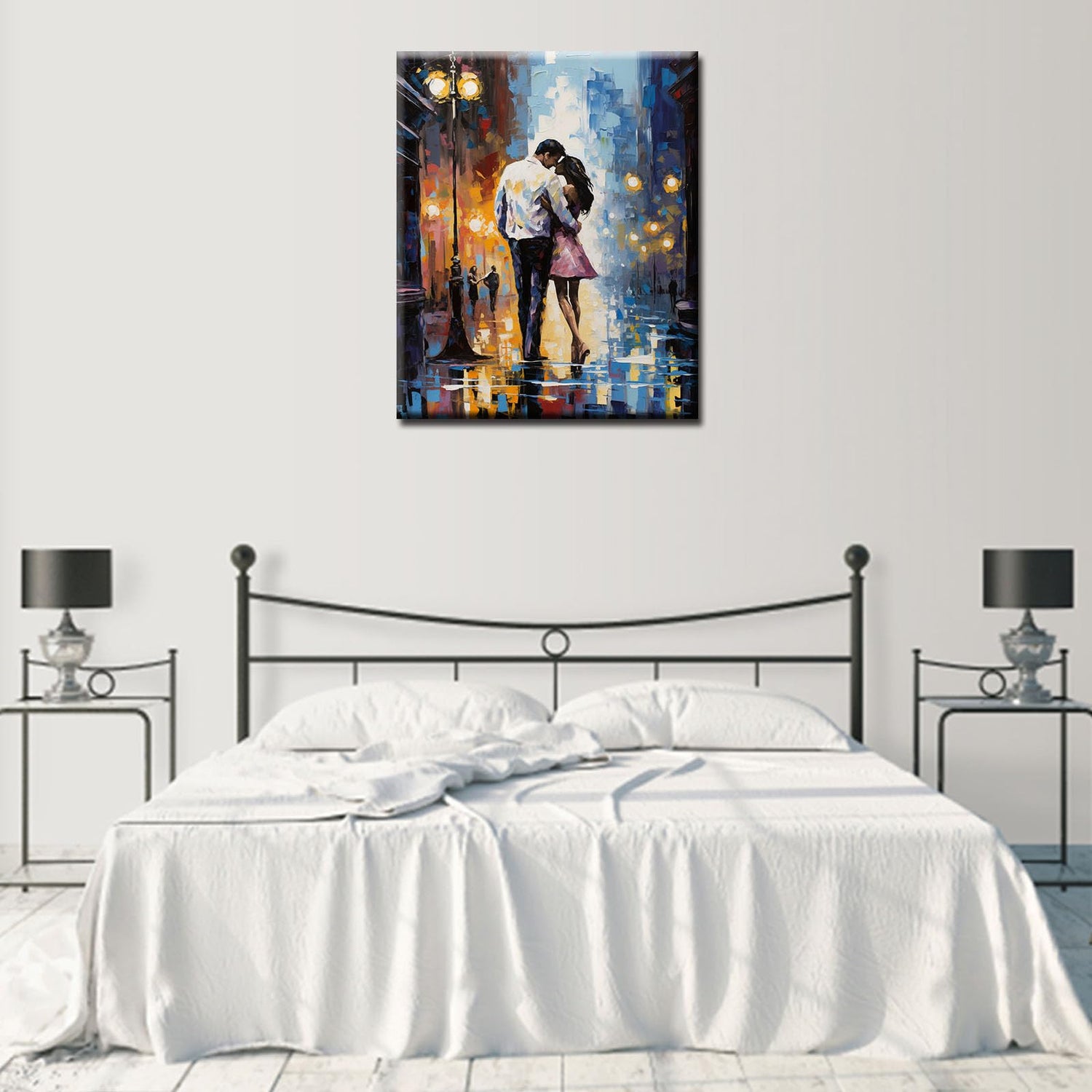 A loving Couple Paint by Numbers Kits with Brushe and Acrylic Pigment on Canvas Lively Street Scenery Painting for Adults Beginner Graffitic Picture Arts Craft Home Decor Gifts 16''x20''(Frameless)