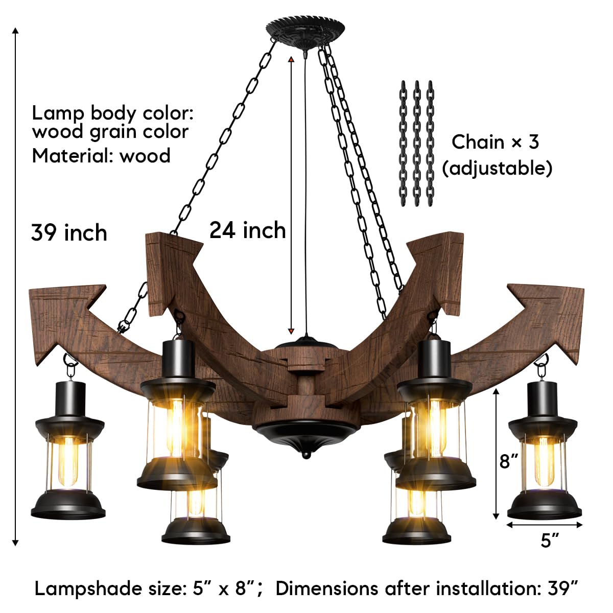 - Perfect Size: With a height of 39 inches and an adjustable hanging chain (Max to 24 inches), this country chandelier is the perfect size to complement various spaces in your home.